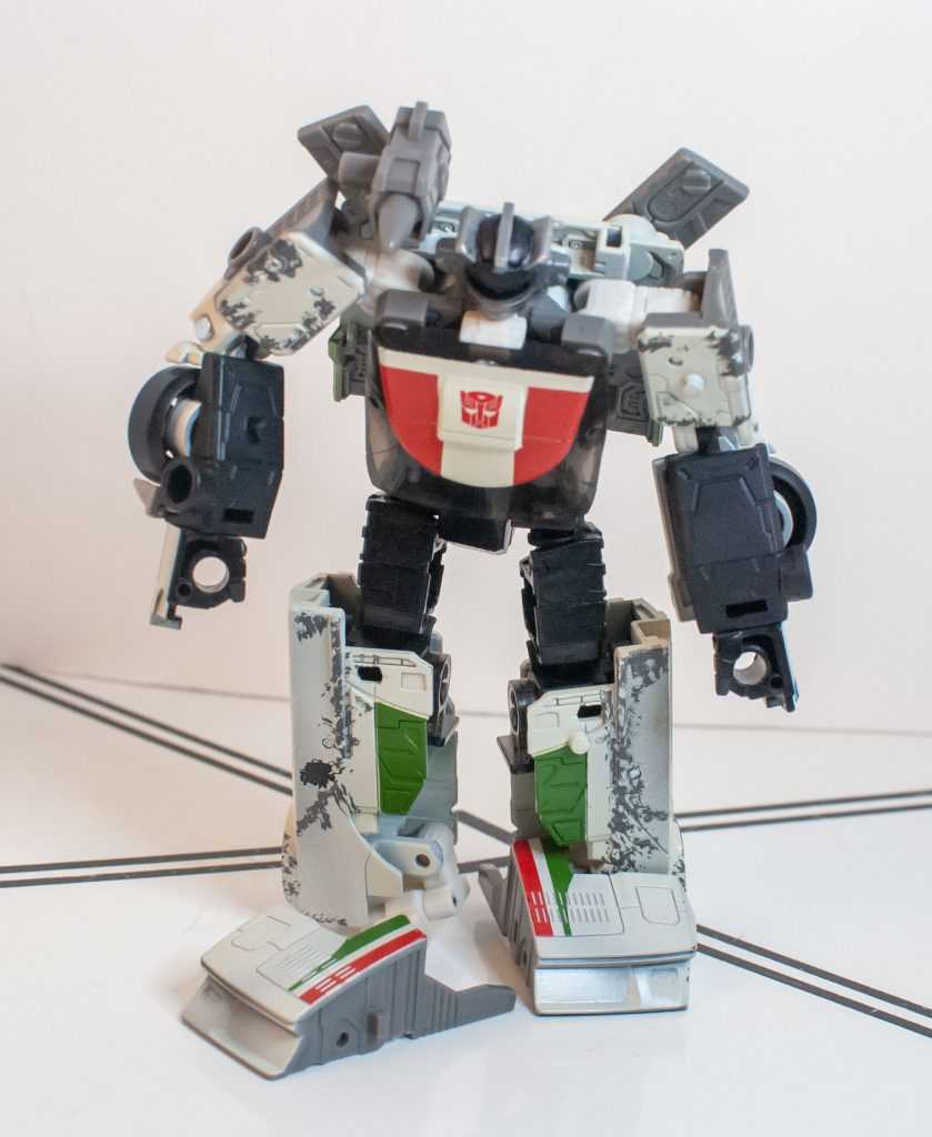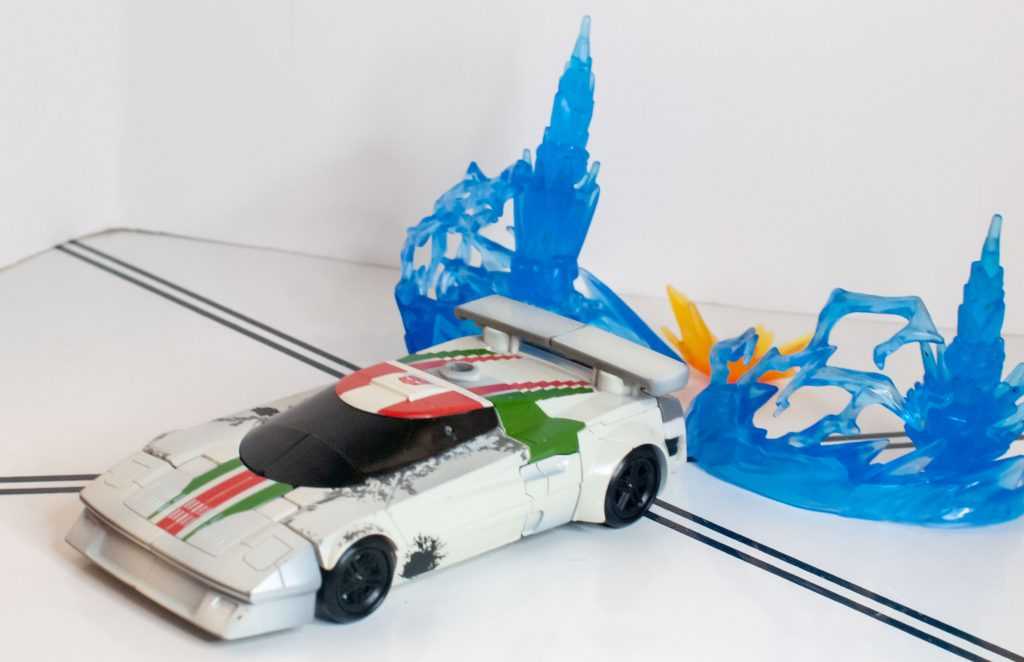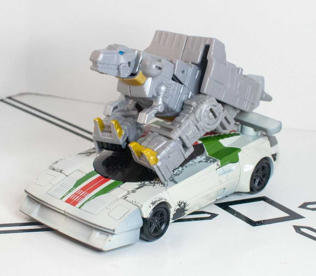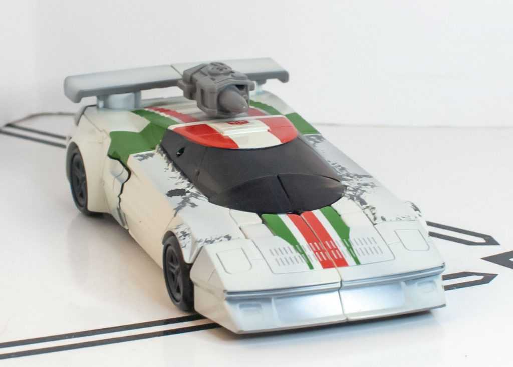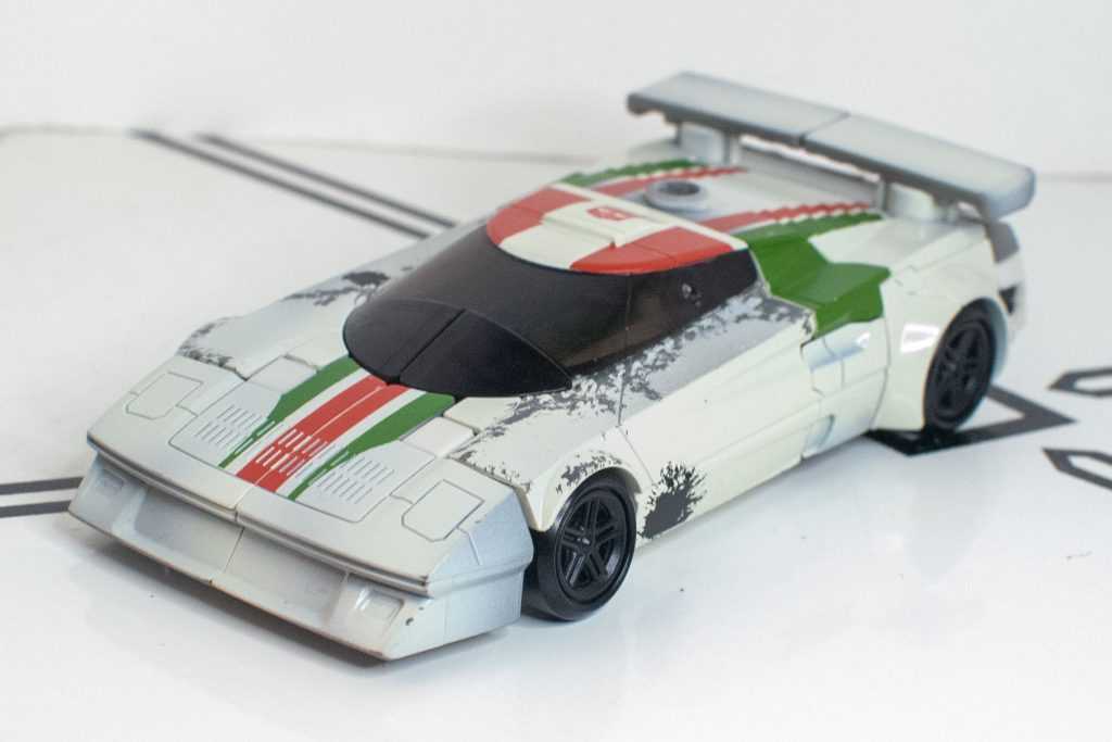 Funny story: Wheeljack never transformed on the Netflix TV show, presumably because the figure they’d based him on (i.e. this one) transformed into an earthly racing car, and they didn’t bother designing a Cybertronian altmode for him. So, this figure changing into a Terran automobile just fuels my “this is dingy Sunbow-esque inventor Wheeljack” headcanon even further.