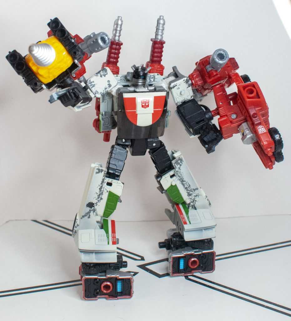 I think the only thing on him that looks a bit hinky is his kind of oddly-shaped arms, with the wheels sticking out of his forearms, and the long car panels behind his hands. But it looks better than the G1 Toy’s gorilla arms! Also, he’s got kind of a long, flat backpack, but the sculpt and the colors both manage to make it kind of vanish.