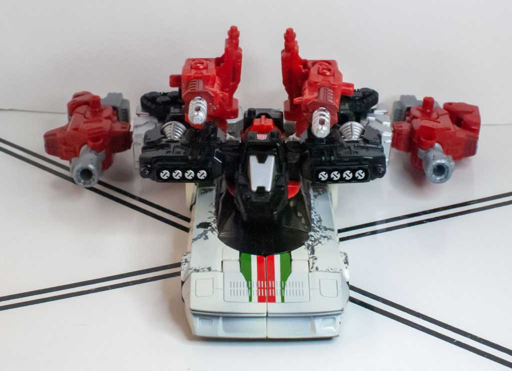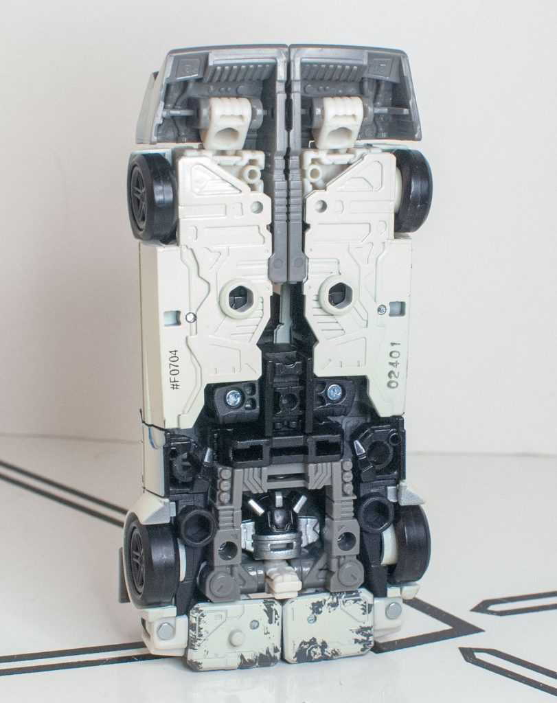 I’d say the most complicated bit of him is compressing his legs and feet into the front half of his car mode, partially because of the fight against his tight joints, but mostly because there’s a fair amount of tabs, slots and holes you need to pop together, otherwise the whole thing won’t line up right (the very front of his car windshield not coming together properly is the telltale sign of this).
