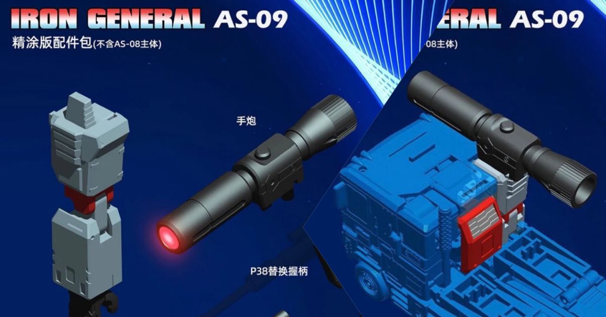 Following the report of the AS-08 Iron General figure release without the trailer and goodies, AS TOYS rolls out the AS-09 Fine Coated Carriage Accessories Package. This looks to be a KO of the MD005 KO SS86 OP that is a KO of the Studio Series Commander Class 86 Optimus Prime. There are some differences, such as a plain gap-filler for the alt mode, and LED light in the Megatron Arm Cannon, as well other changes that are not final in the rendered preview images. This is a nice option for those who only wanted the figure, or both with the upgrades for less than scalper prices. This is also a cheaper way for people to get the added accessories for their official SS86 figures. The AS TOYS AS-09 Iron General Fine Coated Carriage Accessories Package is currently listed on Aliexpress for about $35 USD now, with shipping starting in June 2025. Read on to see the translated product information with more images below. Brand: AS TOYS Item Number: AS-09 Product Name: Iron General Fine Coated Carri <br> See more at https://tformers.com/55116 <br>