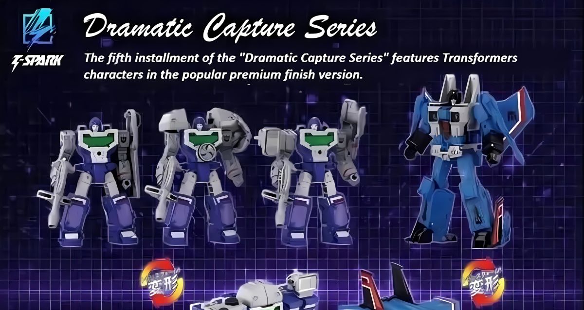 Following the official teasers, we have a new promo imag for the Takara TOMY Transformers Dramatic Capture Series Reflector and Thundercracker set. What has been leaked ahead of the official reveal that is coming soon. The image gives up some details on the contents that will include the Reflector accessory parts, Thundercracker Null-ray weapons, and a Kremzeek figurine. <br> See more at https://tformers.com/55154 <br>