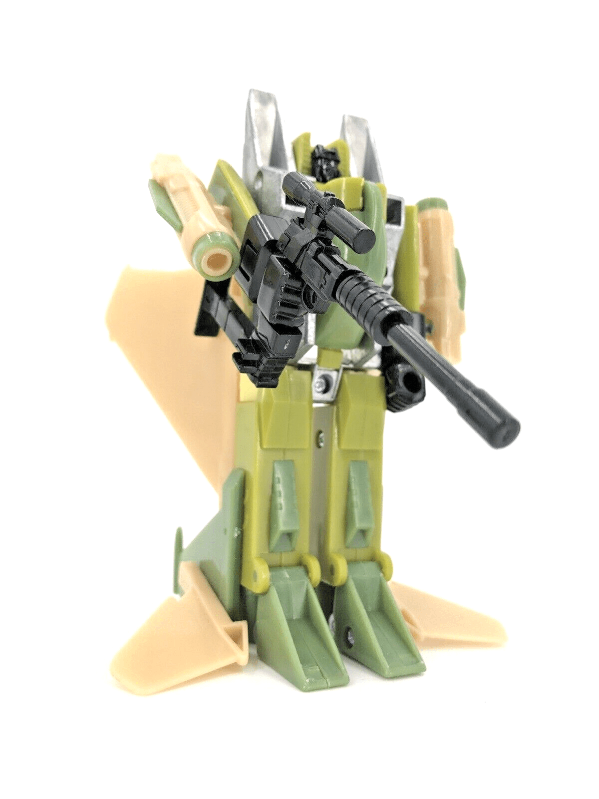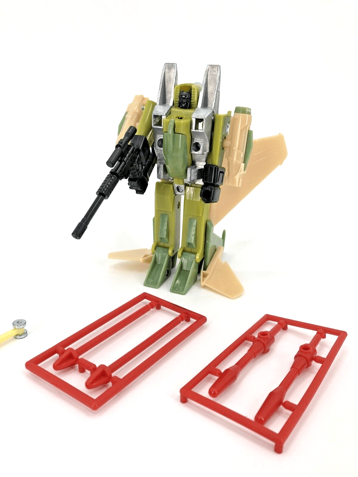 There is a very interesting test shot for the recent Walmart reissue Starscream currently on eBay. As is typical for test shots, the colors are very far from the final toy, possibly chosen at random. What’s fun about this one is it could easily be some generic background Seeker’s proper color scheme, and I dare say it doesn’t look half bad.