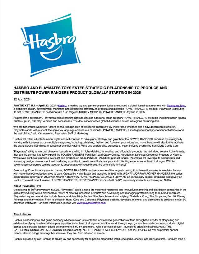 Here’s the press release from Hasbro:
