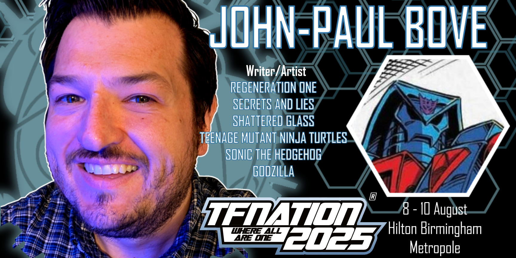 TFNation makes another guest announcement: writer and artist John-Paul Bove. Bove is most known for his work with Transformers: The Definitive G1 Collection where he coloured the UK strips from 1989-90, and the Royal Mail commemorative stamps. He has also been the colouring force for several IDW comics such as Drift – Empire of Stone, Deviations, and Shattered Glass. Not satisfied with the visual side of things, he has also written several comics the likes of Teenage Mutant Ninja Turtles (for Panini), BlueWater’s Wrath of the Titans, IDW’s Dungeons and Dragons, and his own creator-owned project UnEarth. Stay tuned to » Continue Reading.