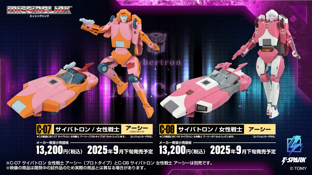 Lost dreams link together across time! The legendary Arcee appears in the “Missing Link” series, a virtual reprint of what might have existed in that era. What if the unreleased Arcee was commercialized in a fully poseable version? This is a completely new design that keeps the size, texture, and nostalgia of the time intact! In 1986, the product development had progressed to a non-transforming styrofoam prototype, but the legendary Arcee was never released. What if product development had continued as it was? Based on this hypothetical scenario, a new transformation mechanism has been implemented to match the size and basic structure using some die-cast alloys of the 1986 toy, and the ideal Arcee toy has finally been released, incorporating movable joints for posing and gimmicks depicted in the anime. The phantom piece that Transformers fans around the world have been waiting for is finally filled. It is available in two colors: the initial version color based on pink/orange, the same as the sty <br> See more at https://tformers.com/54703 <br>