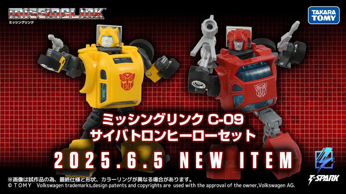 The next Takara TOMY Missing Link release for C-09 Cybertron Hero Set has been official revealed today! The Minibots cartoon color versions join the line with of Bumblebee and Cliffjumper in a 2-pack. The set includes their hand guns and bazooka weapon. Read on to see the details below that will be updated with more information soon as it is released. Missing Link C-09 Cybertron Hero Set Anime Type Bumblebee and Cliffjumper 2-pack Release Date: TBA Retail Price: TBA Lost dreams link across time! A virtual reprint of the “Missing Link” series that may have existed in that era. “Bumble (Anime Type)” and “Cliff (Anime Type)” are released as a set under the name “Cybertron Hero Set”. New parts have been added, and Bumble and Cliff are back in their anime coloring! The image is a prototype, so the final specifications and shape and coloring may differ. TOMY Volkswagen trademarks, design patents and copyrights are used with the approval of the owner, Vol <br> See more at https://tformers.com/55161 <br>