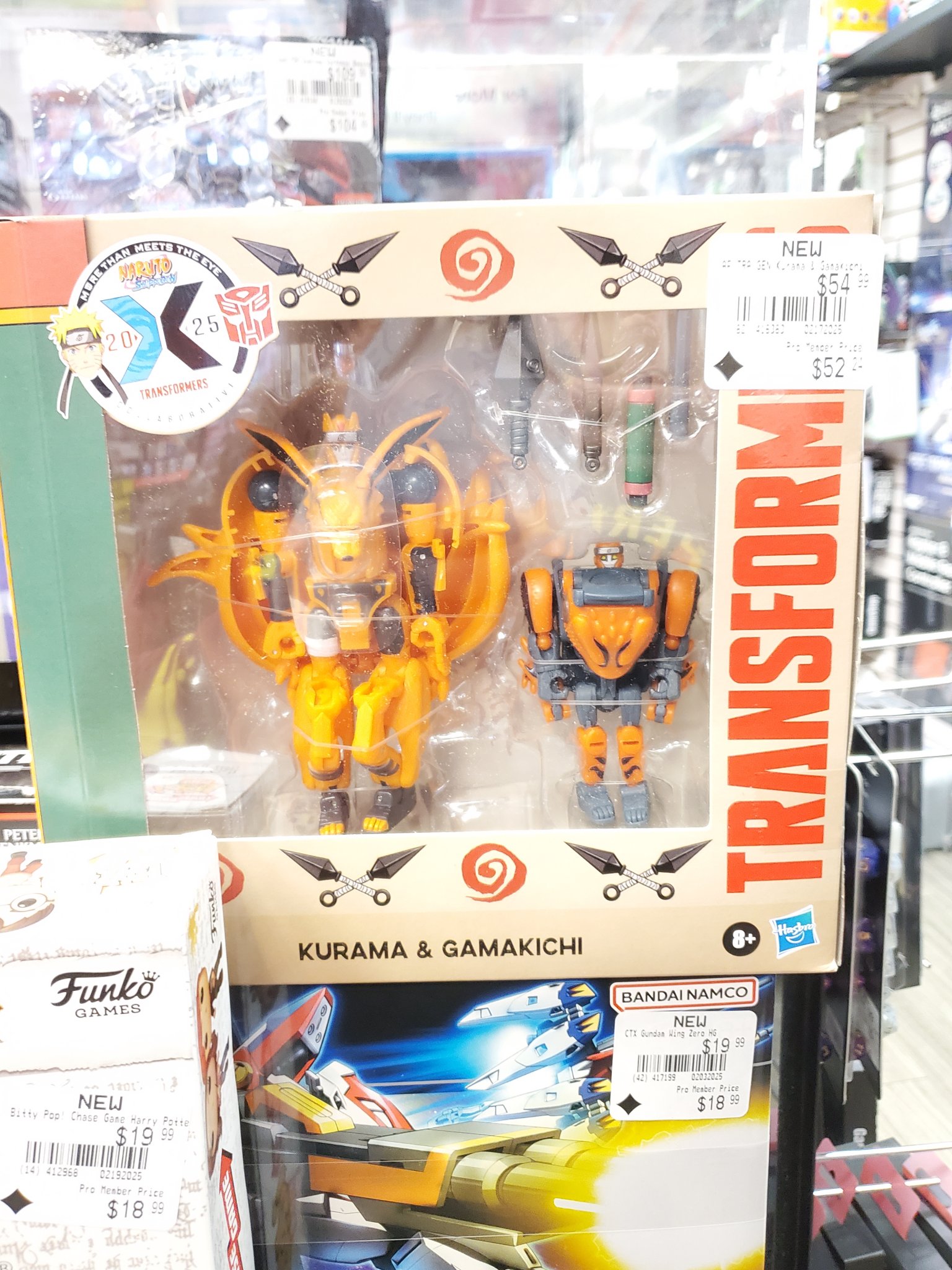 Thanks to 2005 Boards member straxus47 for giving us the heads up of our first US sighting of the new Naruto x Transformers Kurama & Gamakichi 2-Pack at US retail. Kurama is a 9-tail fox/Kyubi which can transform into the final combined form of Naruto and Kurama as seen in the anime. His partner Gamakichi is a new transformable frog. The 2-pack was spotted at the Bowling Green mall Gamestop in Kentucky. Happy hunting!
