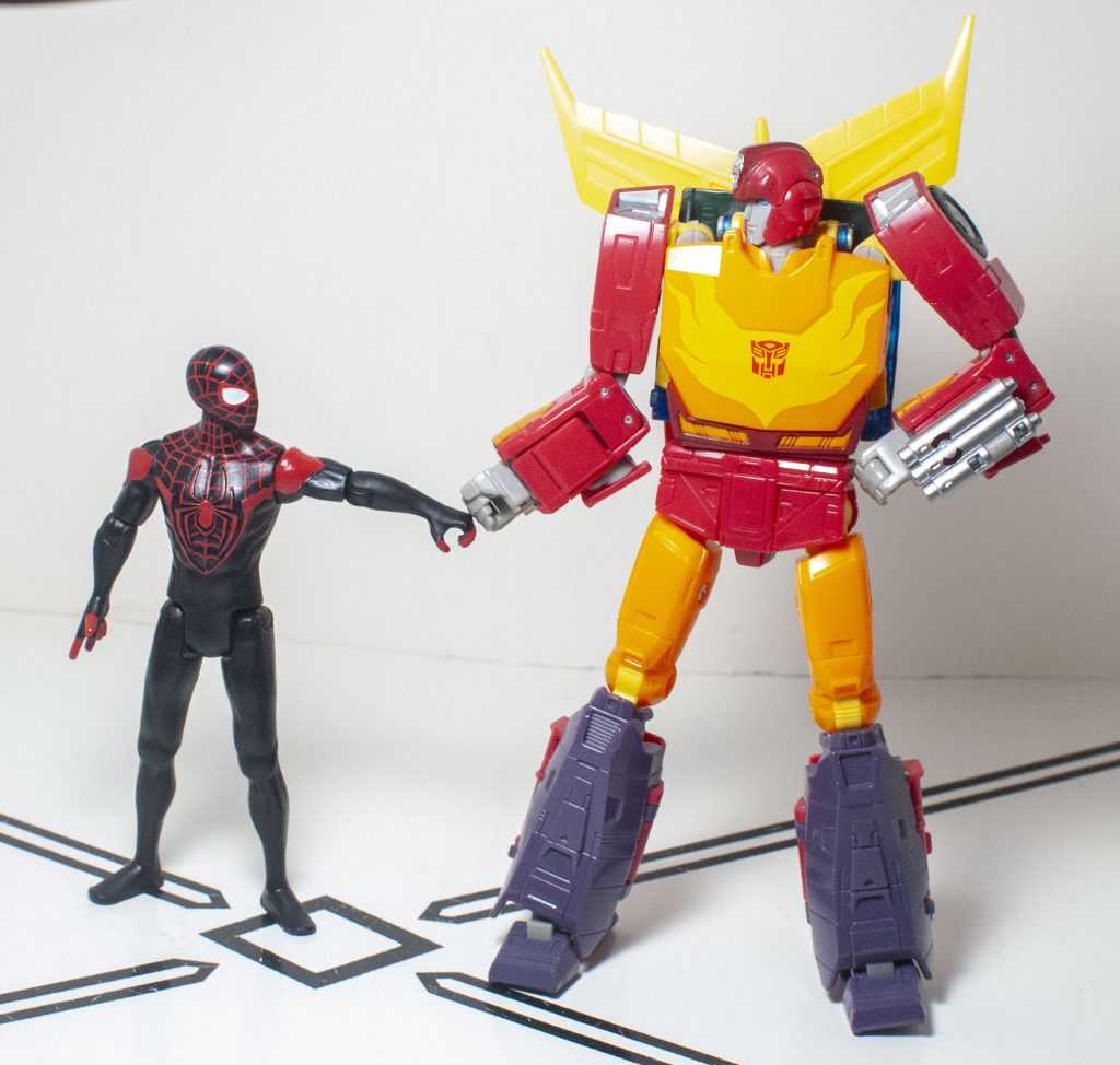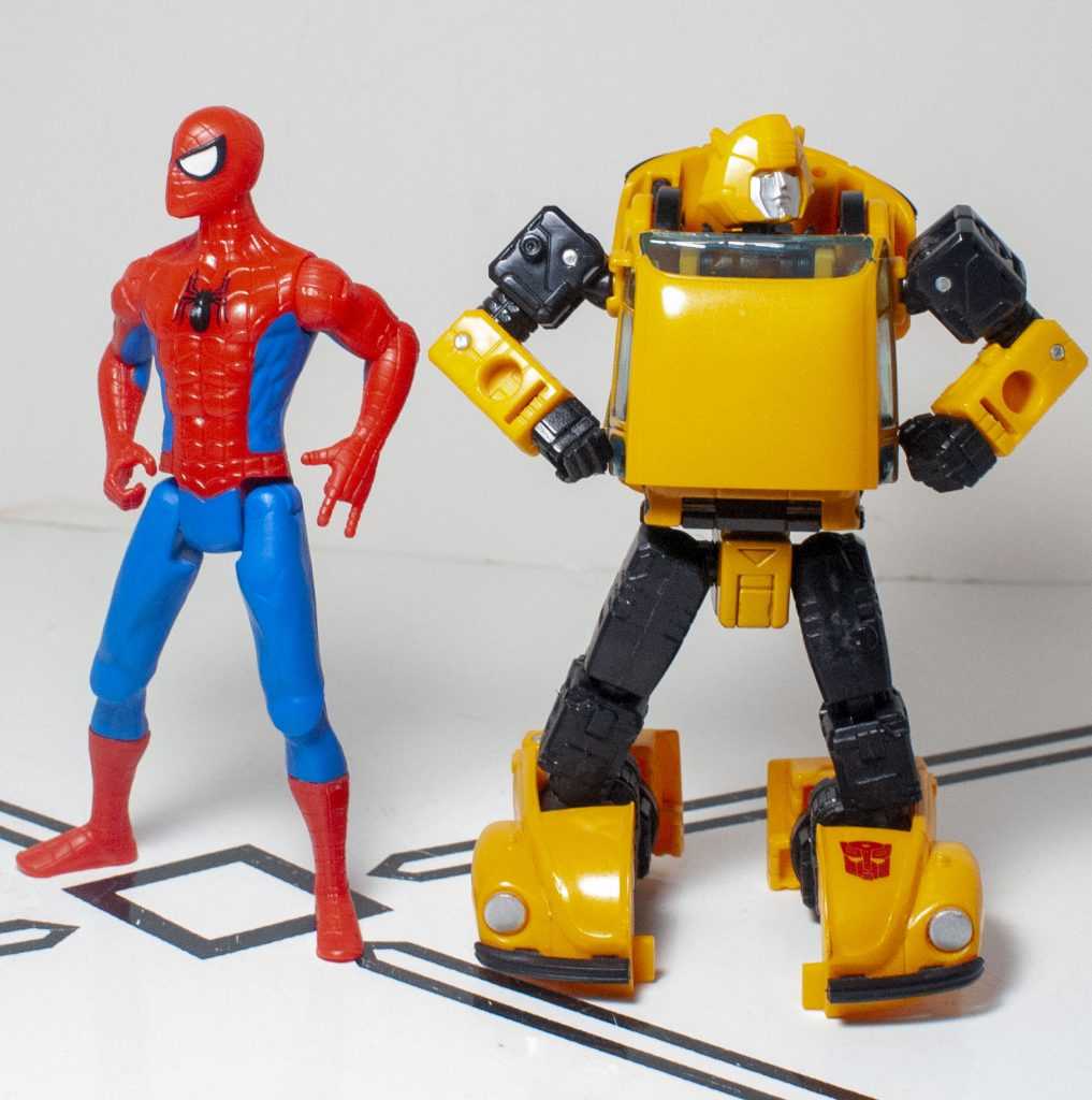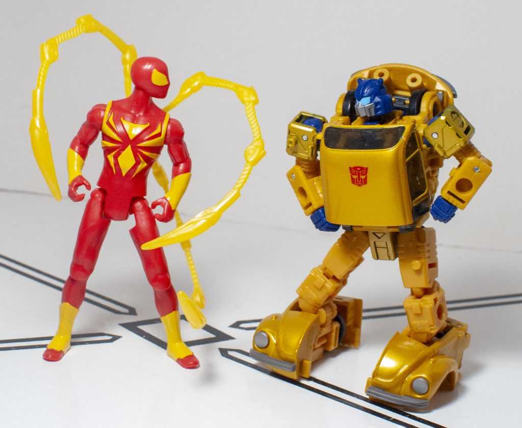 I’ll begin with the Default Peter Parker, and use him to discuss the general aspects of these figures. So, Pete’s about 4 inches tall, slightly bigger than the typical Star Wars scale, but in practice, close enough. More importantly, while he doesn’t actually scale with mainline Transformers, he’s small enough to feel like he fits, if you squint.