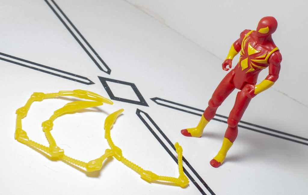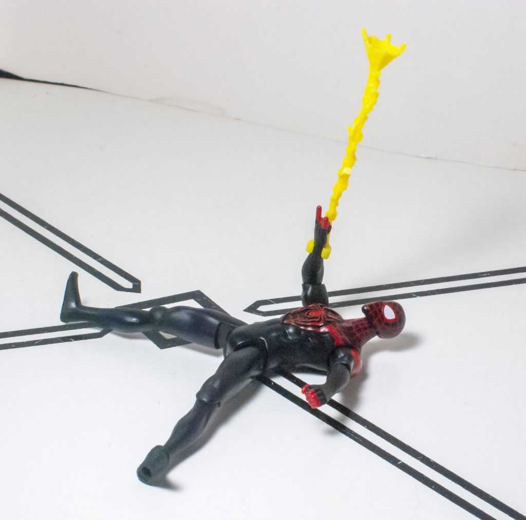 It’s seemingly meant to represent his electric shock attack, but what it actually is is another sculpted web shot that cuffs onto his wrist, but colored bright yellow. It’s….not a great visual.