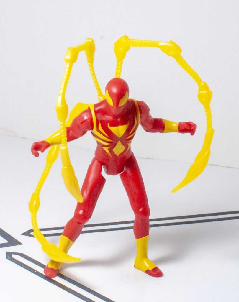 For features, this is one of the few figures in this range to come with more than one accessory. In this case, he’s got three yellow mechanical spider-legs, one of which is a bit larger and a bit less curled than the others. All three of them are, surprisingly, not rubberized, but made out of rigid plastic that’s just thin enough to have some bend to it, though it snaps back into neutral once you let go. To be honest, I could see a kid breaking these things in half by bending them too hard.
