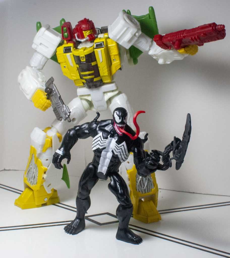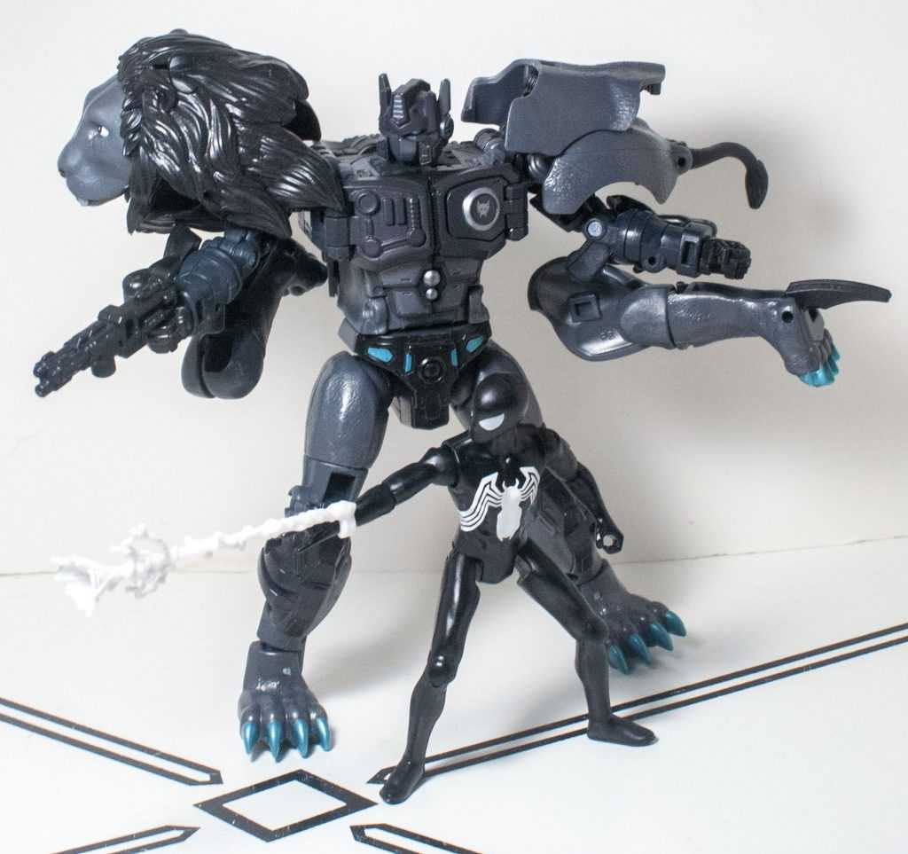 Guy’s gnarly, and intimidating. For colors, he’s mostly black, with white pain for his spider logos, the backs of his hands, and his eyes and teeth, and some red for his mouth, tongue, and jaw.