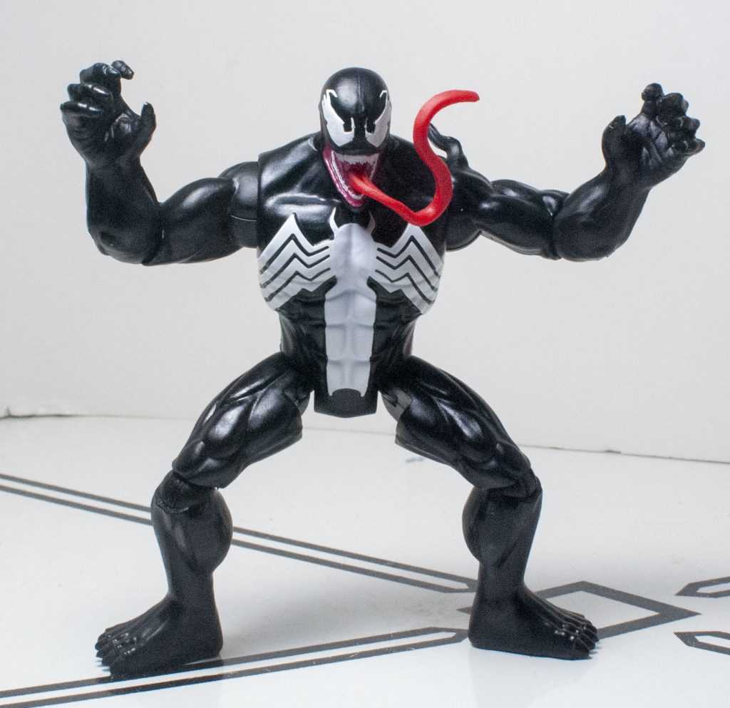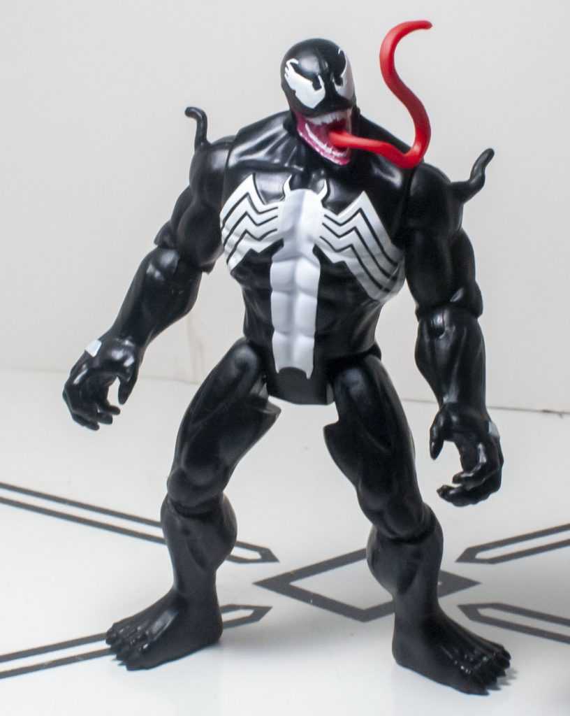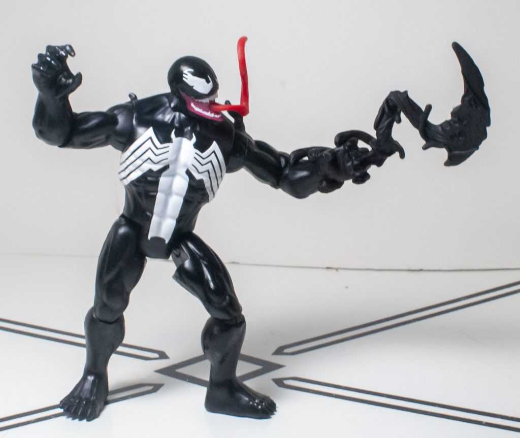 Venom’s lone accessory is a gnarly one, a piece of black plastic in the shape of a kind of scythe-axe type deal, which can snap onto either wrist to give him a melee impliment. I like that it’s here, because between his size, and how he already looks deadly, he could have gone without one.
