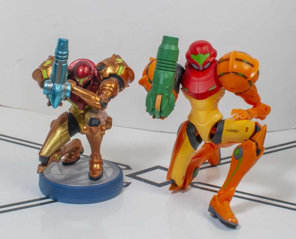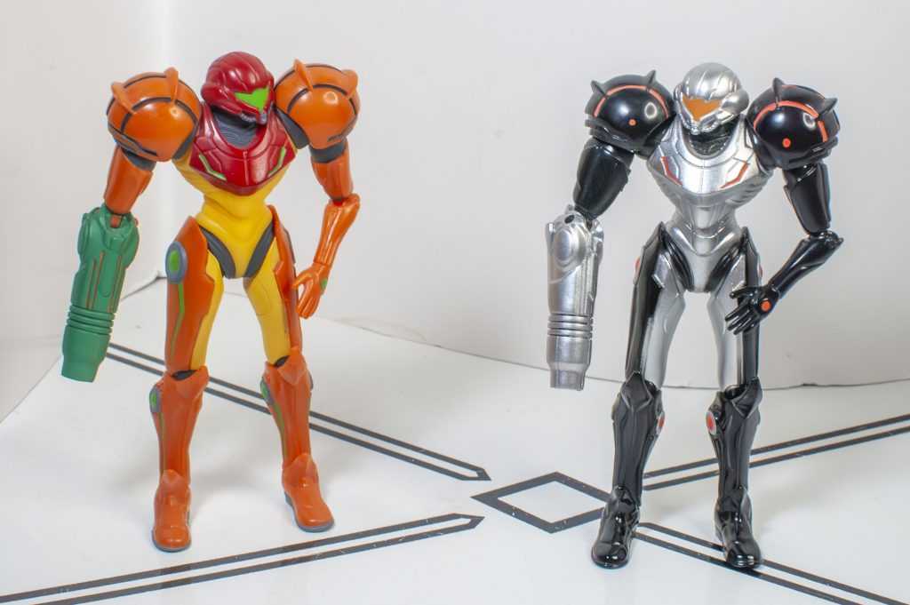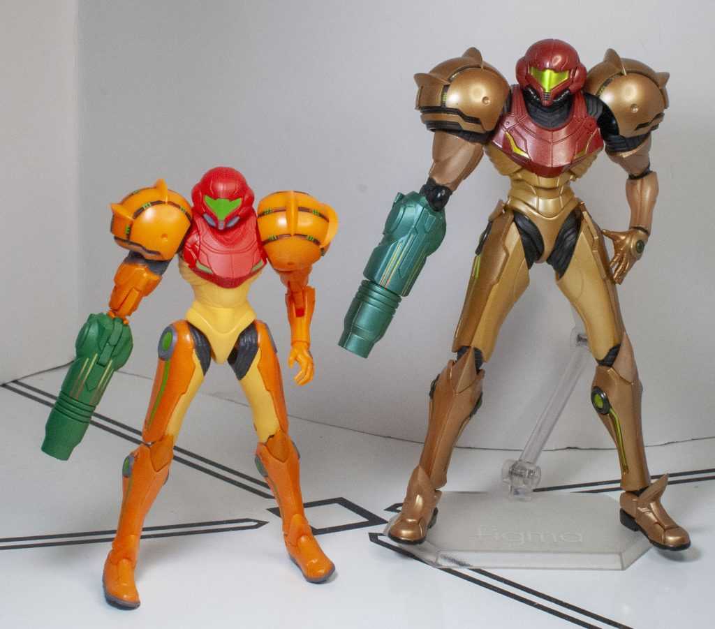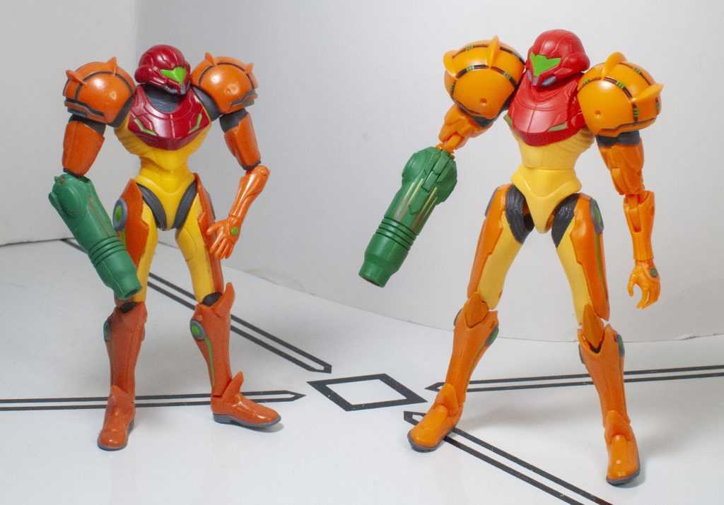 The old World of Nintendo Samus, and the one repaint I got of it (the Phazon Suit).