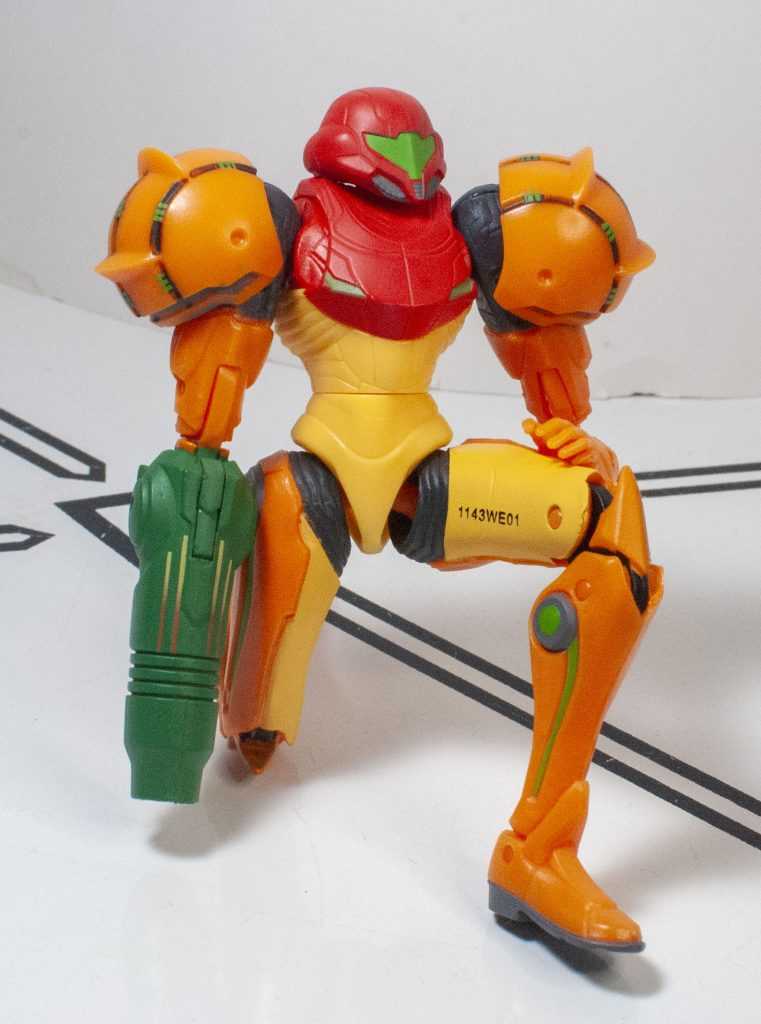 This brightening of the colors isn’t really something I have a problem with, to be clear. Despite being styled after a specific game, this is really meant to be a generic Samus for the people who want one. And between Smash Brothers, non-Prime Metroid games, and official art, her base color has drifted more into orange plenty of times. And she wears it well. What I do have a problem with is a bit of smeared paint on her left knee, but you can’t win ‘em all when it comes to QC, I guess. Well, that and the really obvious product code on her inner thigh, but I guess it had to go somewhere.
