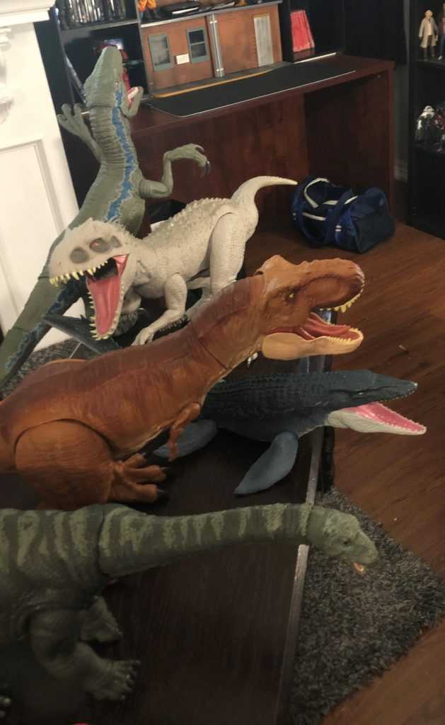 As for this figure, one day, Jess and I wandered into a Gamestop, only to see this, an extremely detailed, collector-focused version of her favorite dino, so naturally, she had to snap it up, and as someone that doesn’t really pay much attention to the Jurassic Park line, it interested me, too. In terms of dino-merch, I was only really familiar with the range of jumbo dinosaurs the modern Jurassic World tie-in lines have slowly released, because my little nephew (who’s also nuts for dinosaurs, like a lot of kids), has slowly been gifted them as he came out, and I’ll admit, they’re pretty cool things, gigantic, and surprisingly well-sculpted and painted for big, knockaround kid’s toys.