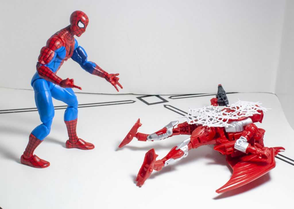 This is where this particular Spider-Man really shines. See, I’m not usually a fan of cartoonish cel-shading on figures, like when Siege Optimus Prime and Megatron got “Classic Animation” repaints.