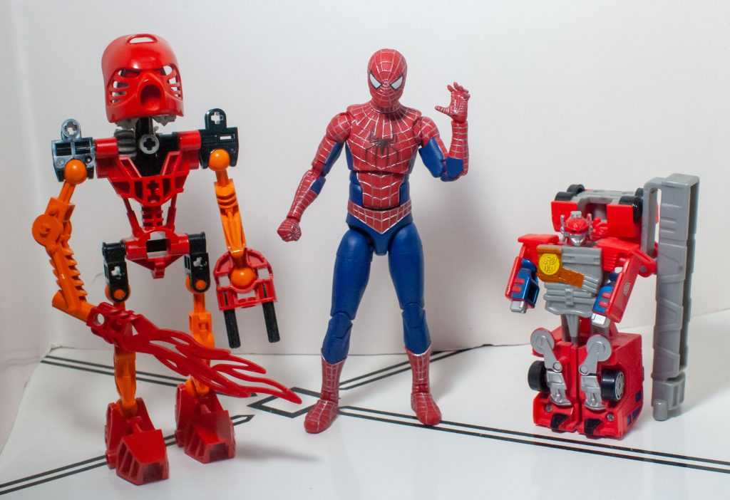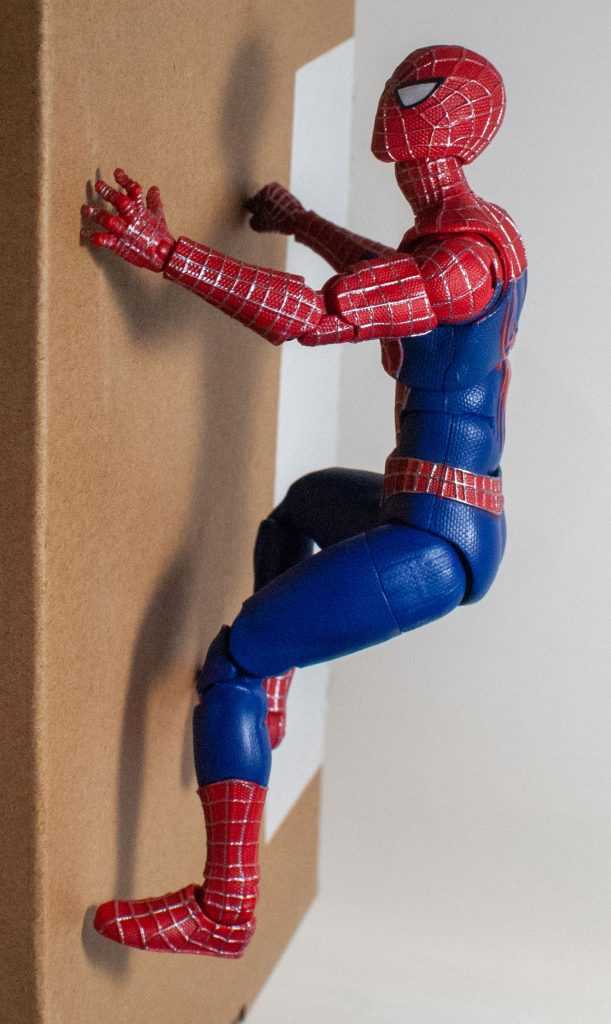 When it comes to that jointage, it’s basically the same story. Comparing them side by side, he has the same joints in the same places as Amazing Fantasy, including double elbows and knees, the waist joint being where the pecs are, the shoulders that crunch back and forward, the works. But between the tightness of the joints, and the fact that some of them move with ratchety clicks instead of fluid motions (namely, his chest-mounted inward-and-outward arm motion), he doesn’t feel as smoothly contortionist-like as his brethren.
