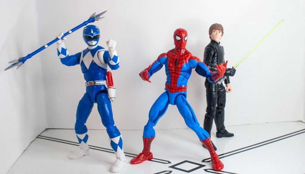 Billy comes out of the box in his Ranger outfit of spandex, but with his helmet off, a look he’d often sport on the show when battle had either just ended, or was imminent. In terms of scale, he stands only a hair taller and broader than my Hasbro Spider-Guys. Also, to get this out of the way, I am going to mention those two figures a lot, as they’re my big point of comparison.
