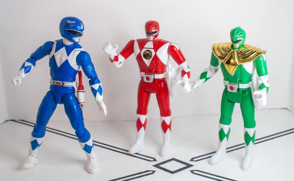 Next up, he’s got an incredibly tiny Power Morpher, the Power Rangers transformation device, which can be dangled off the fingers of his right hand, as his left hand hovers above it, for the classic “It’s Morphin Time” pose. Like the one on his belt, it’s incredibly well-painted, and has all the details of the actual prop on it, including the Triceratops-logo coin in the middle.