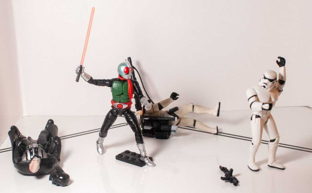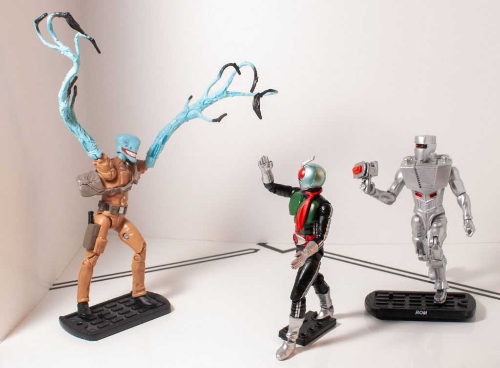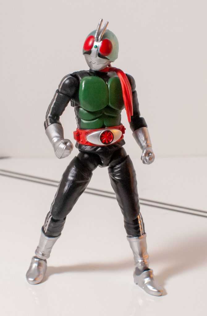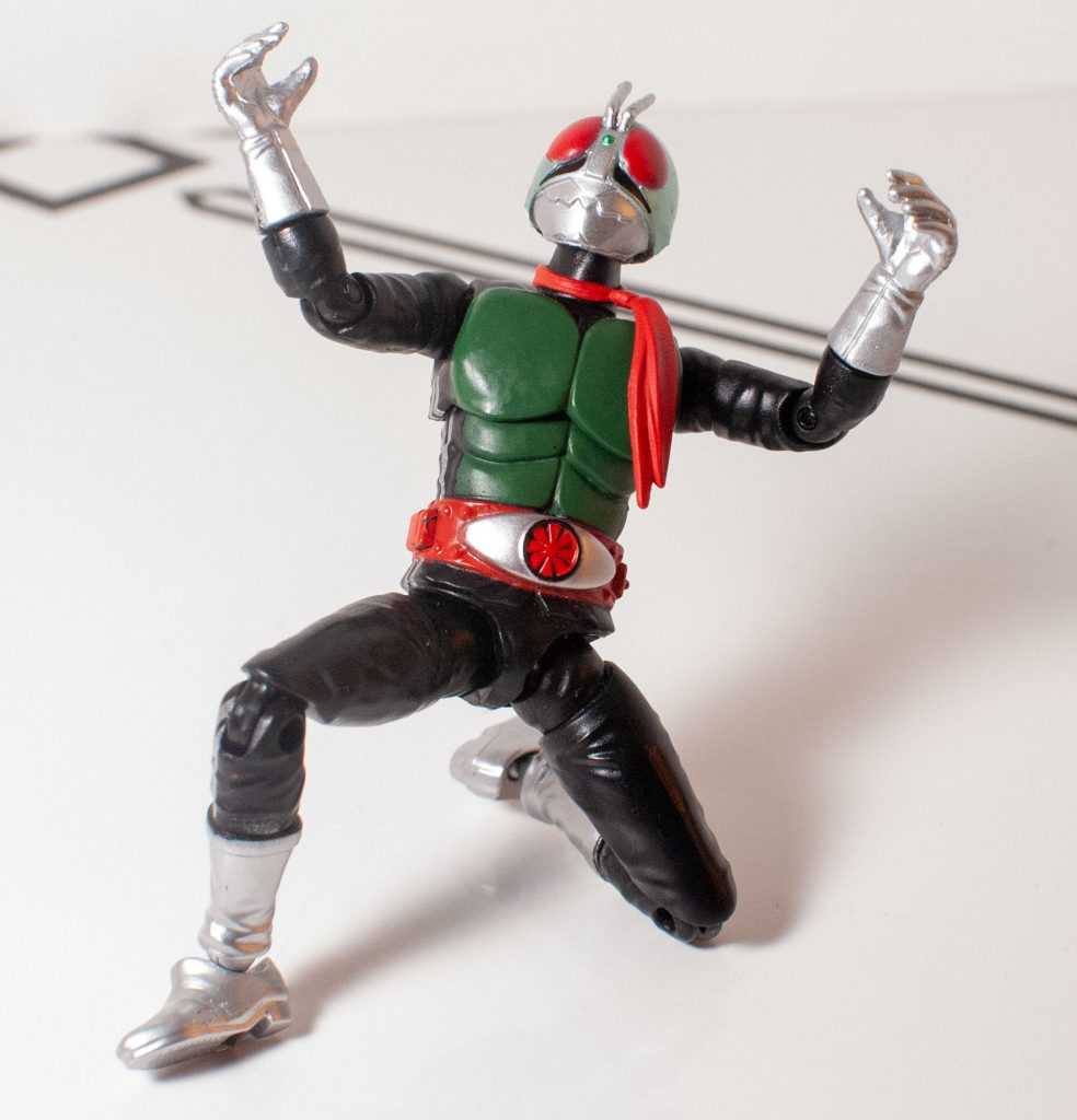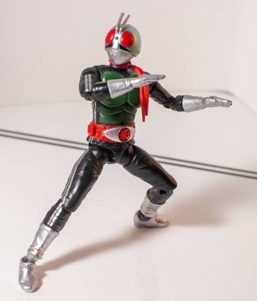 There’s a few lines of modern merchandise for the whole franchise, ranging from the more expensive SH Figuarts, to the cheaper guys, like these Shodo action figures, not to be confused with So-Do, a series of model kits (I have a few of those, too). I picked this version of the original Kamen Rider up at Ontario Collector’s Con a year or two back, from Youtuber Internet Personality Vangelus, funny enough. This is the “Shin” version of the suit, from later on in the series, and is also the default one used whenever the character re-appears in later media, so it’s a good all-around representation of Hongo himself. So, here’s a look at what a Shodo rider figure’s like.