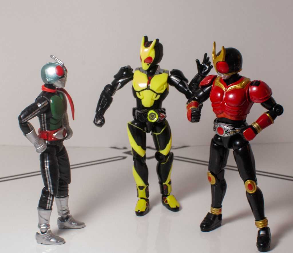 Shodo Ichigo versus So-Do Zero-One and Kuuga. Back in the day, people were shorter.