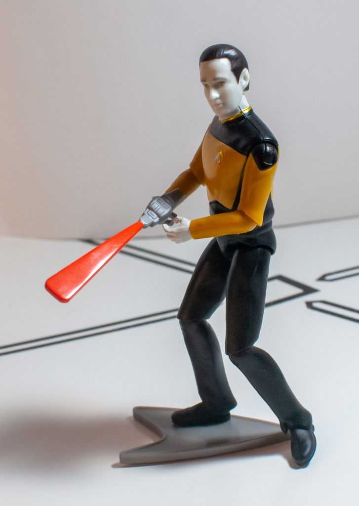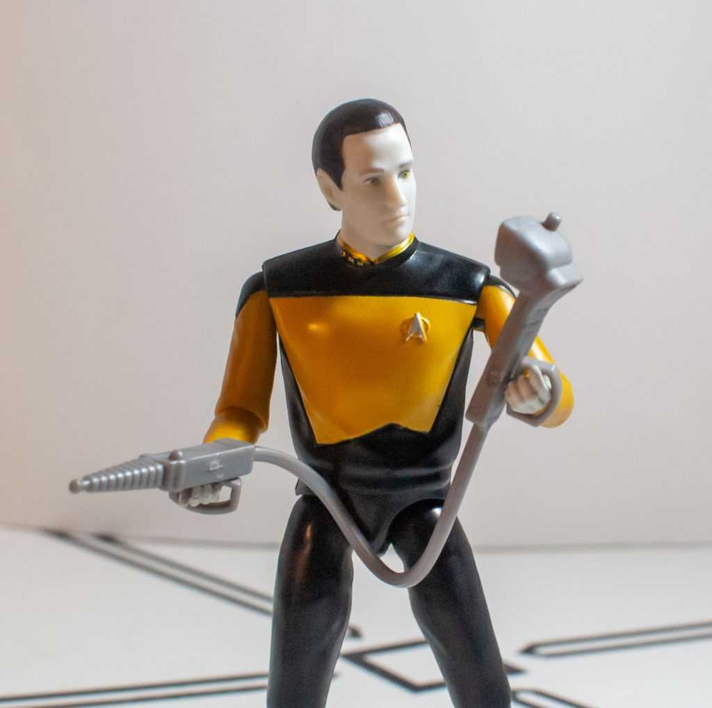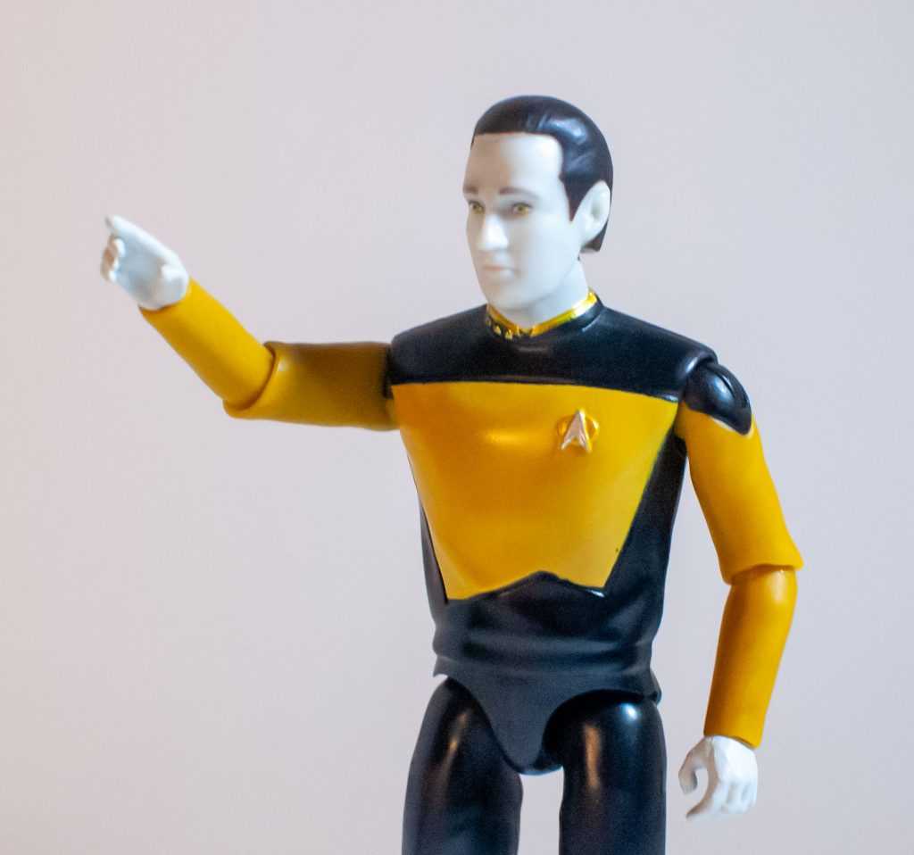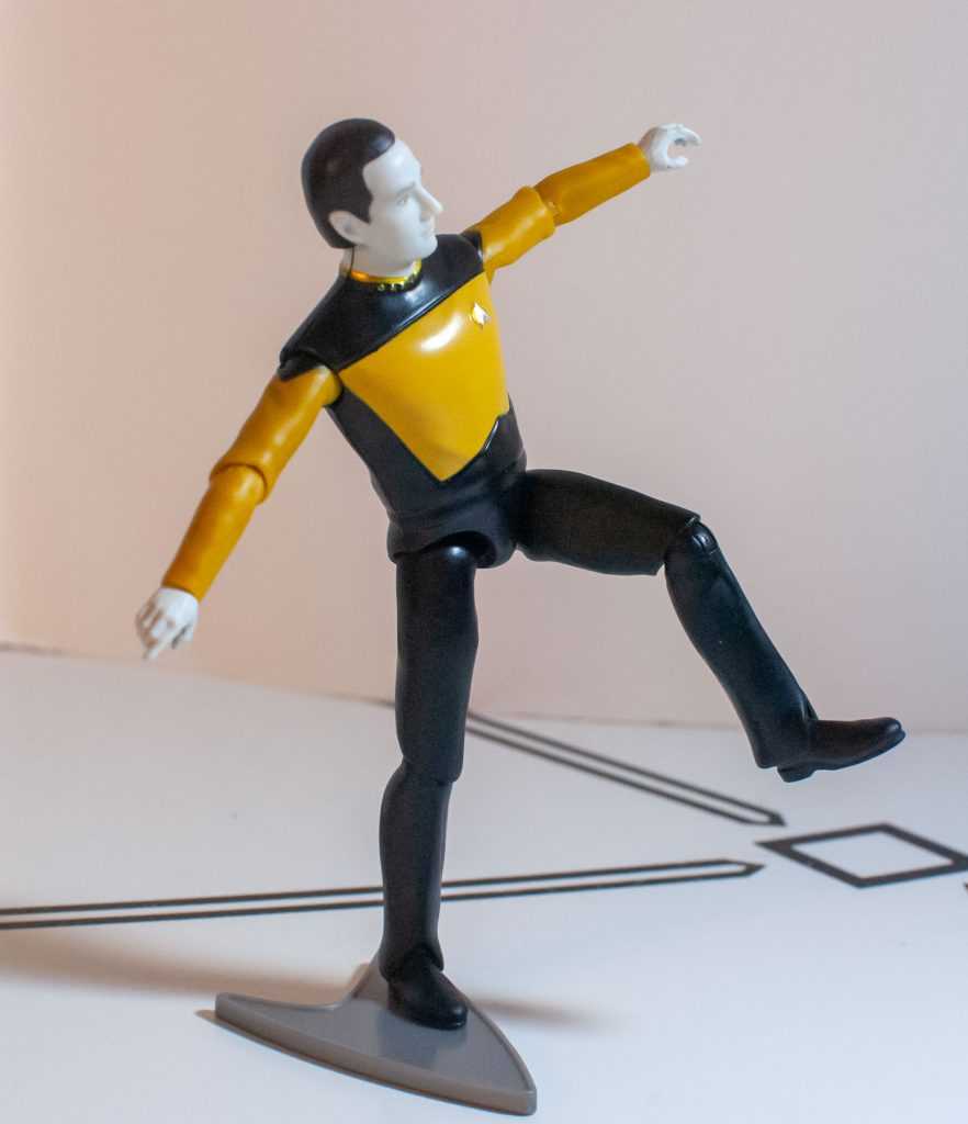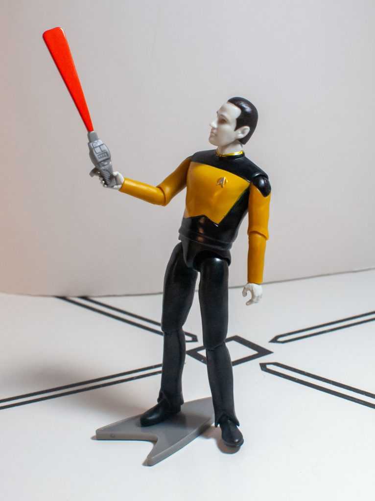 Granted, Data was never exactly a man of action, so I guess the joints he has work well enough for him, but it’s a very odd set of choices, and feels strangely limited. I can’t even claim it’s a homage to the original Playmates figures, because those guys had waists on them.