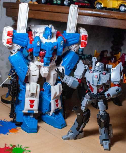 For accessories, he’s got two sets of swappable hands: Splayed open or closed fists. The splayed hands make for great facepalming or gesture-speaking, and goes well with his poseability. For armament, he’s also got a fusion cannon that can clip onto either arm. Seriously, though, he just looks good when paired with my Lost Light cast.