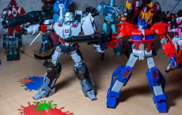 Flame Toys is a legitimate third-party company (i.e, one with a license) that makes Gundam-style model kits of Transformers characters, mostly in original designs (which, to be honest, don’t really appeal to me). However, they’ve also produced a figure of Optimus Prime’s latter-day IDW Comics design, which I already reviewed. As a fan of the comic, I absolutely had to get this guy, too. Flame Toys kits don’t transform (I’ve heard that’s a condition of the license), but in Megatron’s case, that actually works, since he never transformed in the pages of MTMTE/Lost Light, either (a justified criticism of the comic, they often forgot the characters had alternate modes). So, let’s see how this kit stacks up compared to the last one. A couple of these photos come from Venomously Addicted Photography, who you can follow on Facebook and on Instagram.