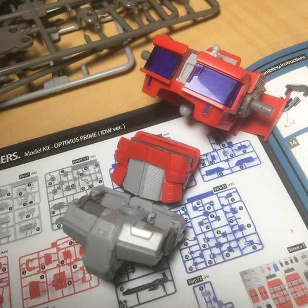 I’m not much of a model kit person, despite it being one of the oldest collector hobbies, and Gundam model kits being a longstanding institution. Naturally, it took Transformers to get me into it. High-end model and figure company Flame Toys has been making action figure model kits of Transformers characters for a little while now. They don’t transform, but they’re fully poseable once built and stickered. They’ve mostly been original designs, new takes on the classic cast which, to be honest, didn’t really appeal to me, but this Optimus Prime is the first one of their releases to be based on something pre-existing. Specifically, it replicates how he appeared in the back half of IDW’s Transformers comics, before they rebooted in 2019. This is the design he had in John Barber’s excellent Robots in Disguise and Optimus Prime comics, and save for a small Legends-class minifigure in 2014, it’s a design no proper figure’s been made of yet. It’s a wonderful comic, and having that specific version of Optimus really appealed to me. On those grounds, I decided to take the plunge into model kits.