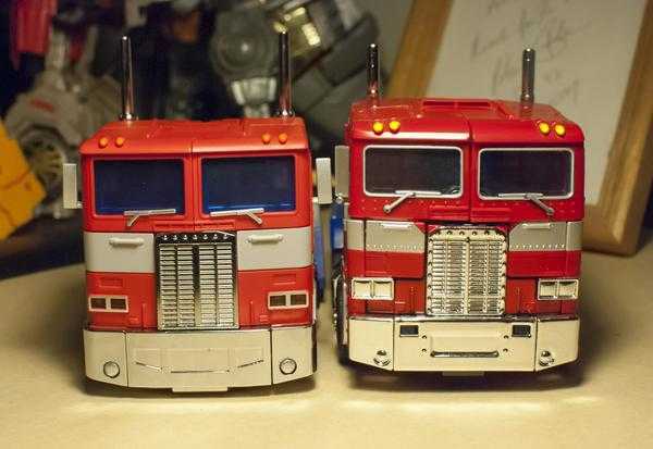 Light of Freedom is certainly more cartoon-accurate, cleaner and less busy in robot mode. His legs are skinnier, and don’t have the bulk of the wheels sticking out of the sides. He looks more unified, thanks to the block colors on his body. He’s also way more proportionate, since MP-10 had oddly long arms. Both have pretty good head sculpts, but I like Light of Freedom’s better.