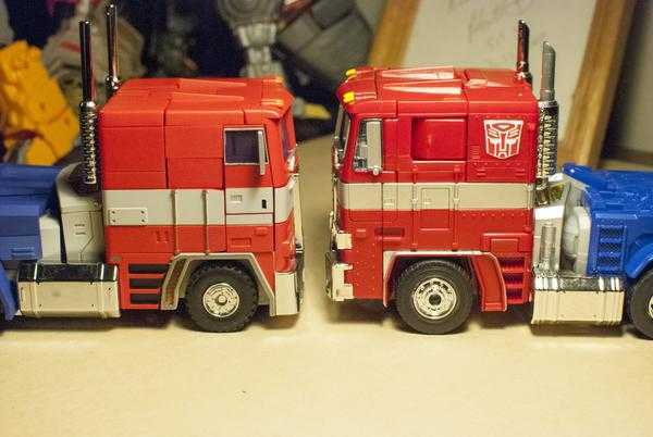 In truck mode, they look about the same in terms of quality. MP-44 lacks the white stripe, again, due to animation accuracy, but also has way more sculpted details. One advantage MP-44 seems to have is that its opening side doors actually have space for figures, though it looks like its chest windows no longer open as a result, and the wipers on them are just sculpted, unpainted details.