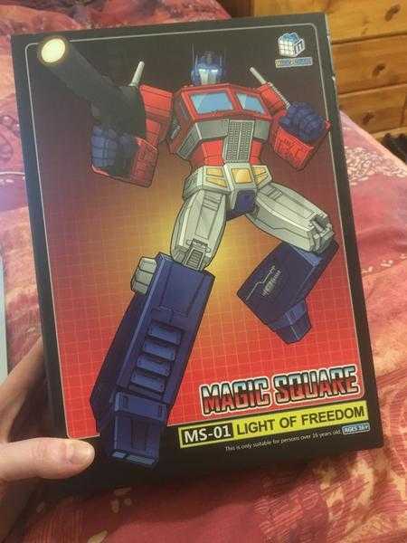 Magic Square is one of many “third-party” companies, the fan name for groups that produce unofficial, collector-oriented robot toys based on the Transformers. As if in response to MP-44, they created “Light of Freedom,” their own take on a new Masterpiece Optimus Prime. Importantly, he only retails for about $160 Canadian, depending on your source. But aside from that, he just aims to be an even better version of the Autobot leader we know and love, one that captures the spirit of the deep-voiced, paternal warrior of the 80’s cartoon and movie, and fits on your Masterpiece shelf.