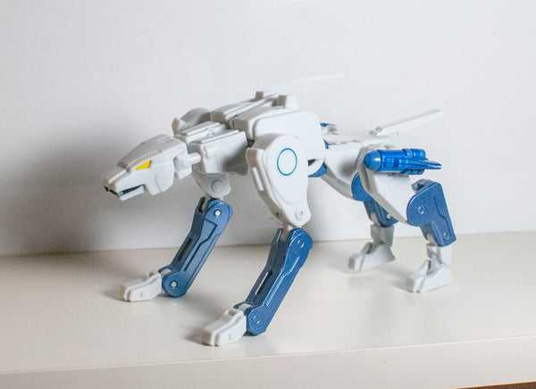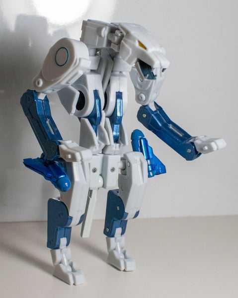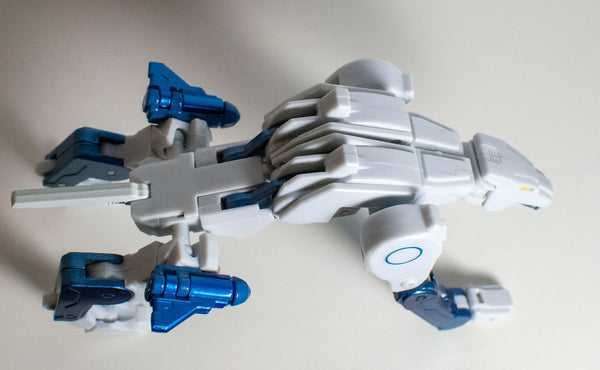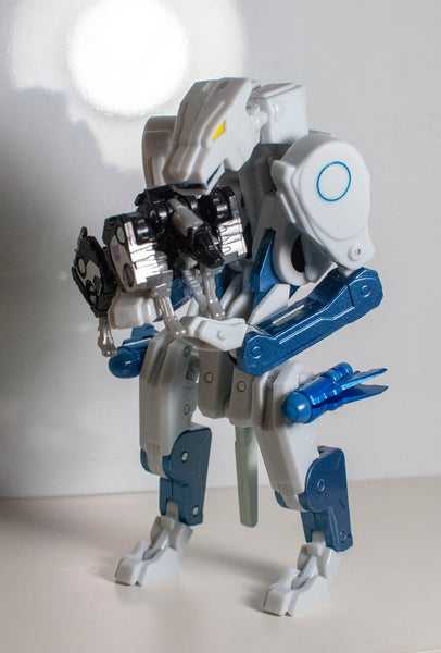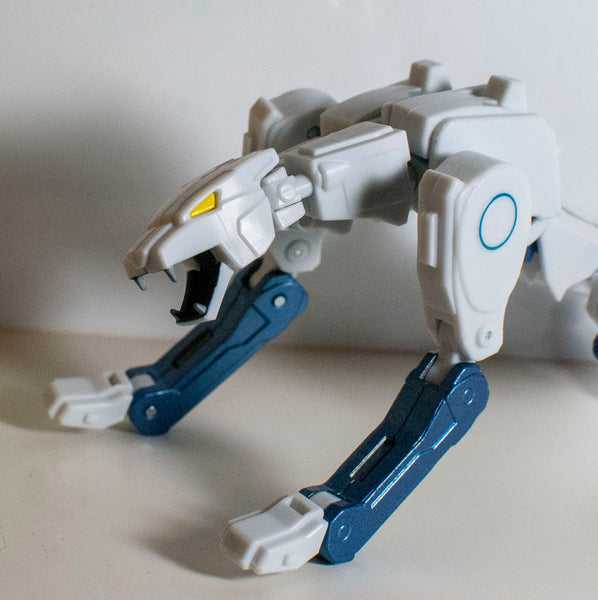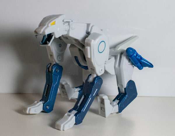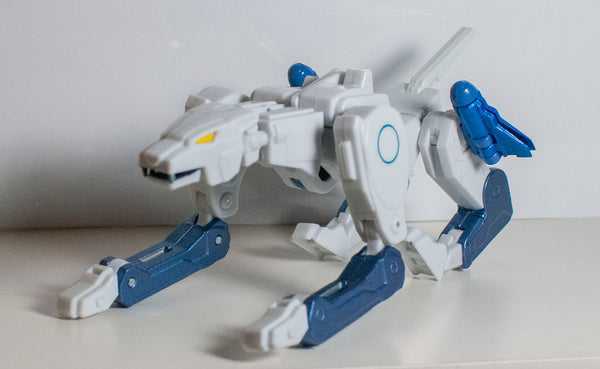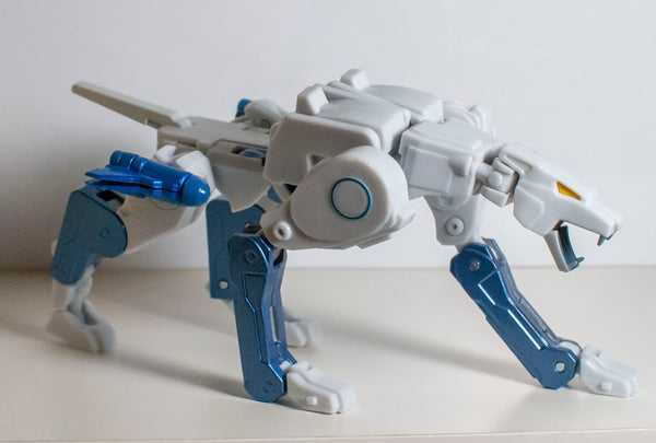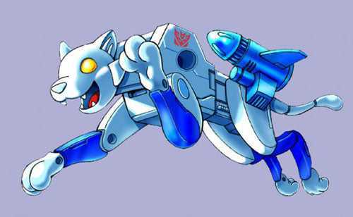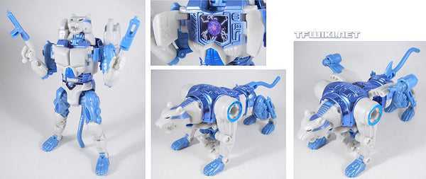 Which was repainted into a convention-exclusive Transmetal version of fellow Beast Wars character Tigatron, who was also white and light blue…