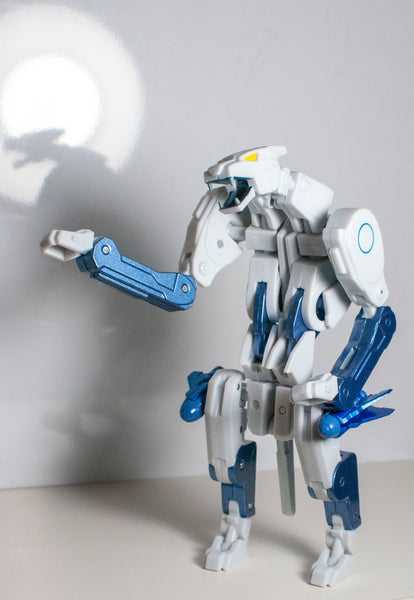 I can’t decide if it looks creepy, cool, or cute, but it’s a testament to the strength of the engineering and articulation that this is even possible. Heck, his head articulation is actually increased in this position.