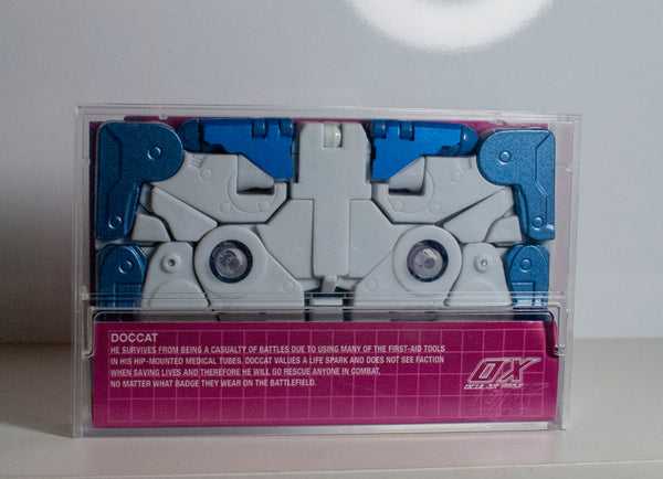 Doccat was the second of TFCon DC 2020’s planned exclusive figures, along with Azalea Protoform, offered up online after the convention had to be cancelled due to global events. Anyway, in terms of who he is, Doccat is a homage to two seperate Transformers characters, Glit, and Shattered Glass Ravage.