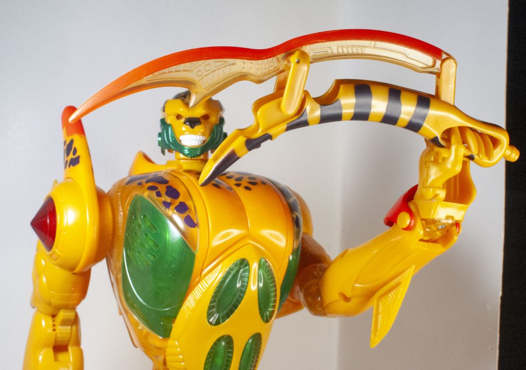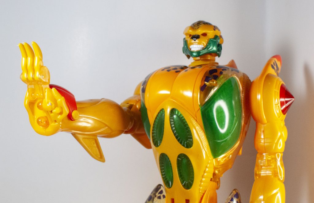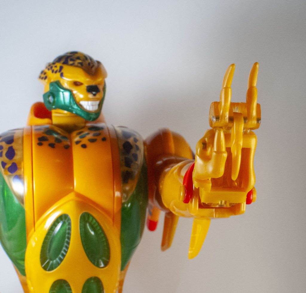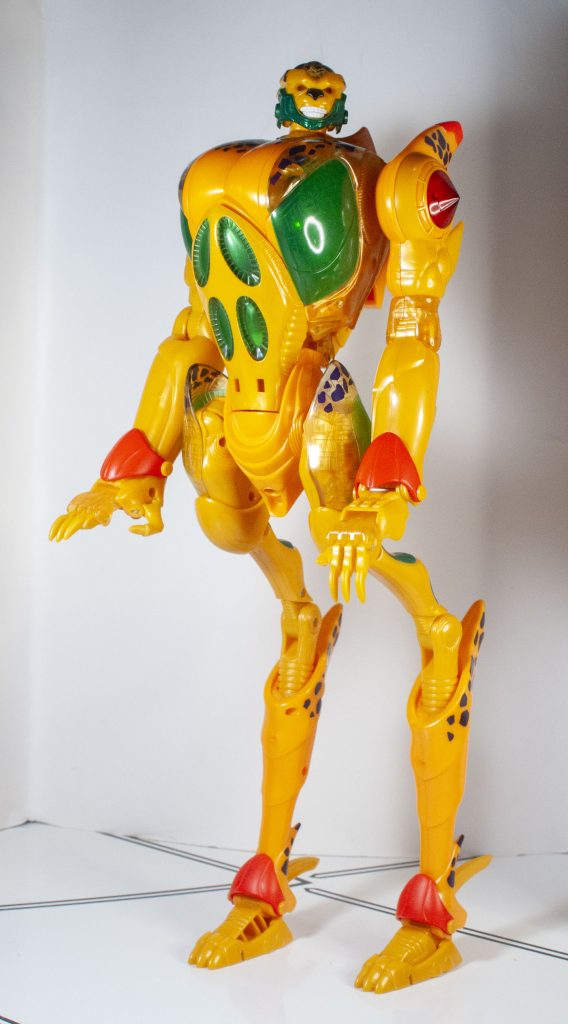 He’s a weird one proportionally, though, with a wasp waist, huge, bent-back rear legs, and a tail with a spike at the end, with similar spikes on his forearms. This is a mechanical beast from another planet that happens to resemble a cheetah, I think.