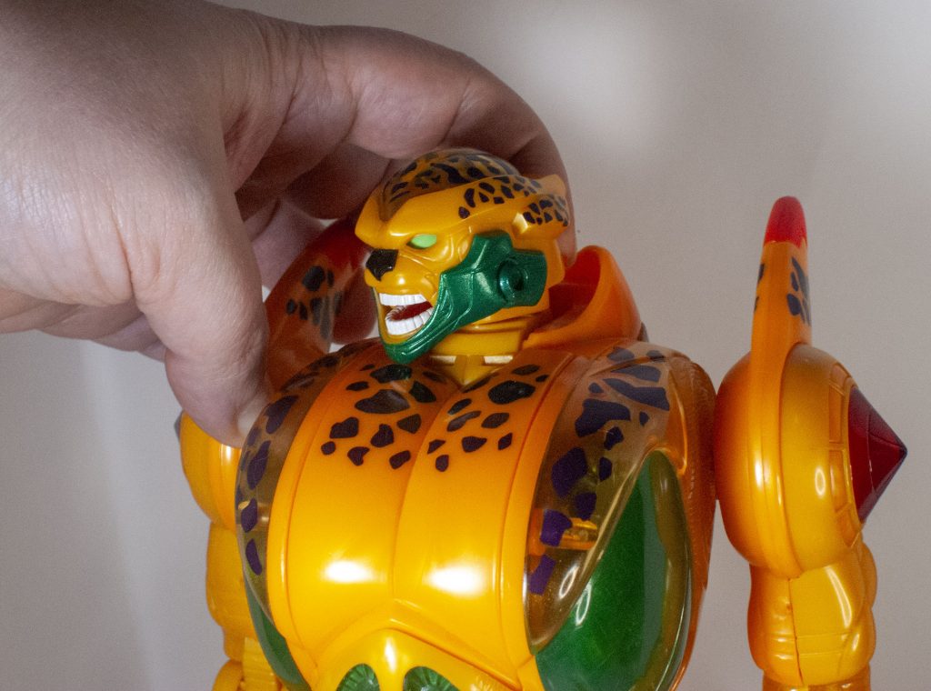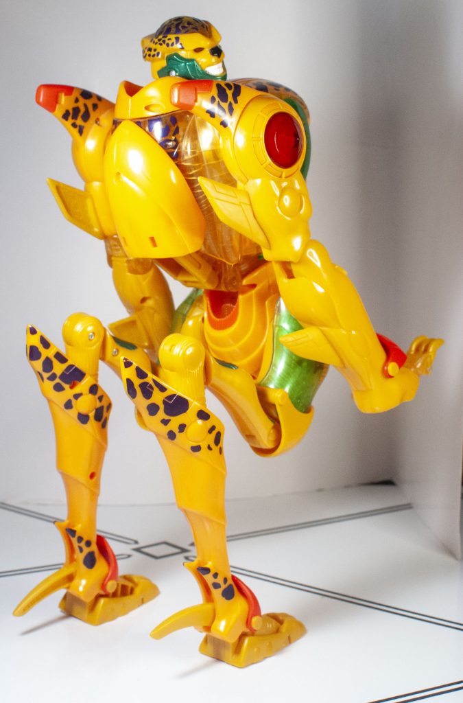 So, a thing about the Beast Machines toyline was that it was notorious for having toys that weren’t very show accurate, approaching G1 levels of inaccuracy, and this larger figure was an attempt to fix that. But it only sort of works in this mode, and it’s clear that the robot mode was the priority. It gets the proportions right in this mode, but almost none of the details actually match his show model, which was aiming to have a proper cheetah hide over a lot of it, and a normal cat tail.
