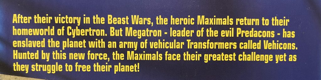 And it came with its box, which helpfully sums up the premise of today’s toyline, Beast Machines.