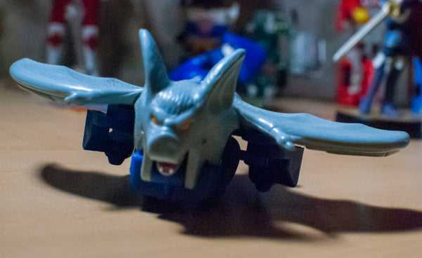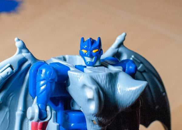 This version of Optimus changes into a blue bat, stuck in a gliding pose. His animal parts are impressively intricate, with molded details on his fur, and a well- sculpted face. He’s got zero articulation, though, aside from a movable jaw, a common thing at this size.