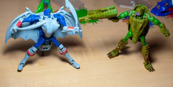These two were a grail of mine, so I’m a bit biased, but honestly, they’re just good, clean fun. They have excellent sculpts and colors, they’re a snap to transform, have nifty weapons, detailed altmodes, cool design, and are fun to pose and battle. They make great desktop toys, and since they’re a versus set, they work well as one-offs even if you don’t intend to collect any more of the Beast Wars line, though I’ll add that most Beast Wars basics have the same great design and energy as them. I recommend these (or something else) from that era, if you like poseable, fun desk toys, and can find them for good secondary-market prices.