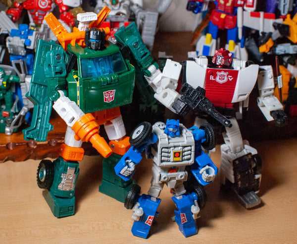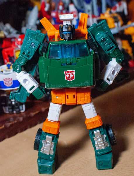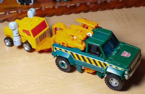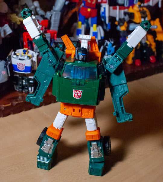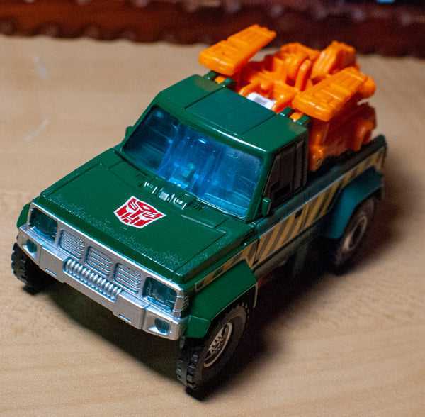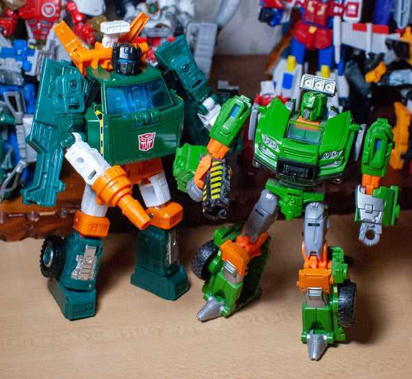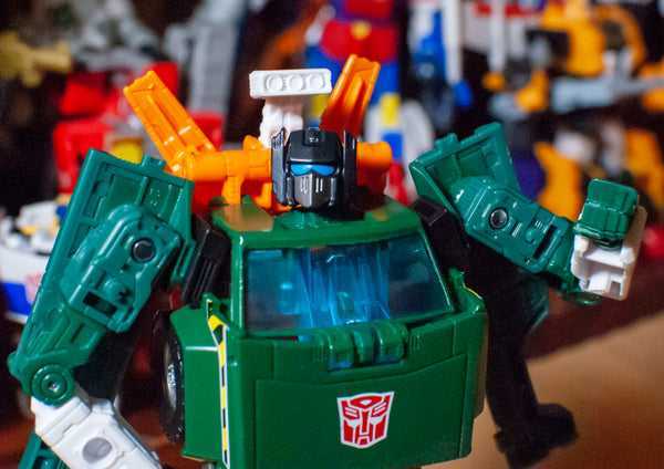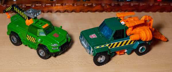 Hoist’s previous Deluxe-sized toy was released in the 2014 Thrilling 30 line, and is still pretty easy to obtain. In fact, if you’re a mainline G1-update collector like me, you probably have one. As for which is better, compared side by side, it’s a very close thing, since they’re both very nice figures. I think the new one’s slightly better, solely thanks to his excellent robot mode articulation. The old one poses fine, it’s just that articulation engineering has increased slightly since 2014, so the new one’s a bit more bendy.