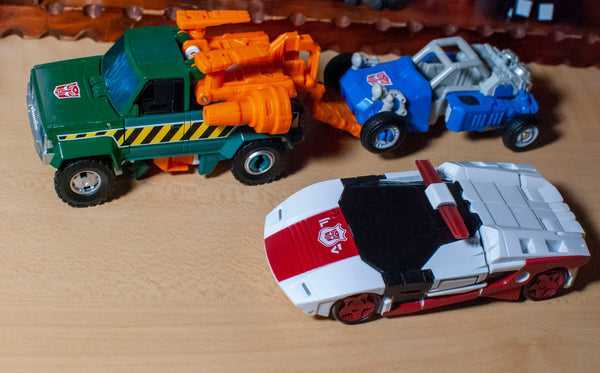 That being said, visually, they’re trying to do totally different things. The Thrilling 30 one is a modernized update of the design, made to look more heroic and sleek. Meanwhile, the Earthrise one is less heroic on purpose, slavishly recreating his original design. I’ll be keeping both, because the Thrilling 30 one fits in with my Lost Light crew (since he appeared in those comics in this form). I’d say getting an upgrade is conditional on how much having a G1-looking Hoist is worth to you, or if the extra poseability is really important.