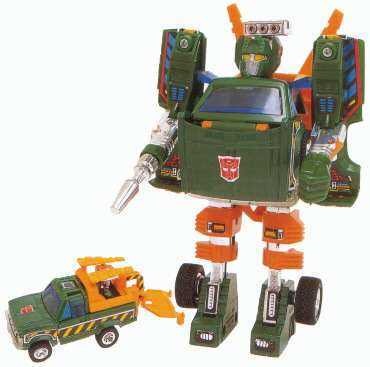 So, let’s talk about Hoist. He was introduced in the second year of the original Transformers cartoon, comic, and toyline (where he was a retooling of Trailbreaker). This green pickup truck was a jovial Autobot mechanic, doing small repairs and towing things when needed. He had a British accent, a cheerful attitude, and really, not much else, being sort of semi-obscure. Notably, on the cartoon, he was often paired with the similarly British crane, Grapple, and Hoist’s more humble, down-to-earth attitude contrasted Grapple’s artistic haughtiness.