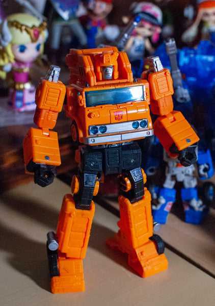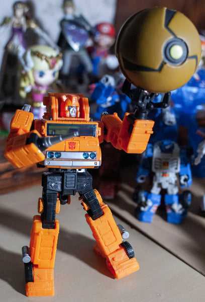 In terms of his sculpt, he’s very Sunbow-accurate, like the Masterpiece. Personally, I think he looks a little bit streamlined and a little less round and dumpy compared to his show model, but he wears the proportions well, and they suit the character. If anything, I wish he was a bit taller, just to contrast him with his partner.