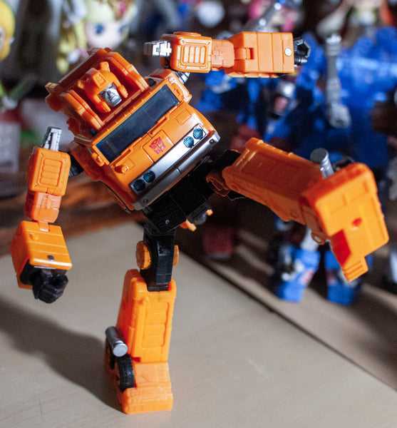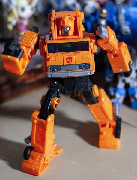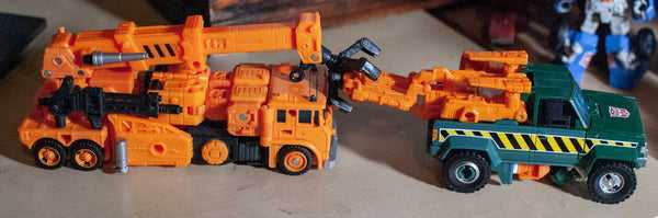 The funny thing about Grapple is that he’s a bit shorter than Siege Optimus, but gives the impression of bulk. Something I like about the vibe he gives off, design wise, is another thing he shares with Hoist. These are not robotic warriors, or at least they don’t read as them. They feel like normal, non-combatant robot people, who exist outside of a battle context, and would rather be helping raise buildings. It really makes them interesting characters, and the figure communicate the vibe well. He feels like just a guy who happens to be a robot.