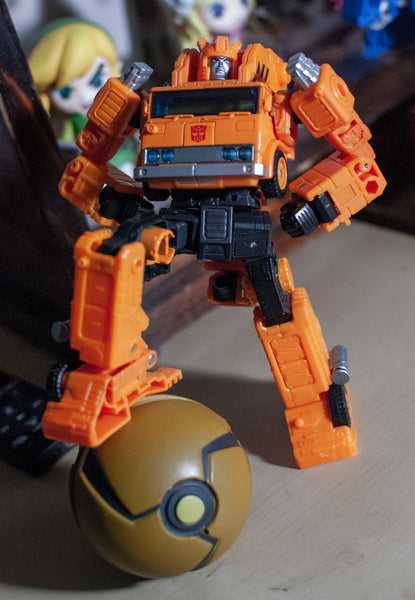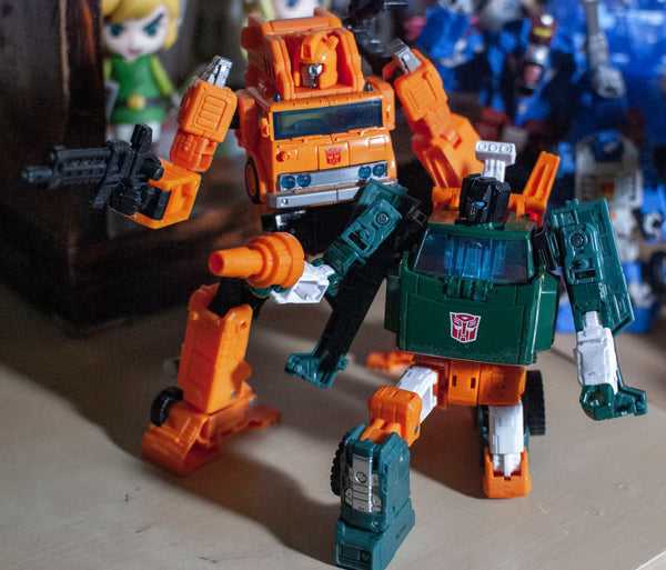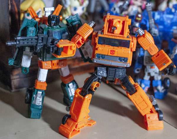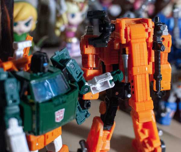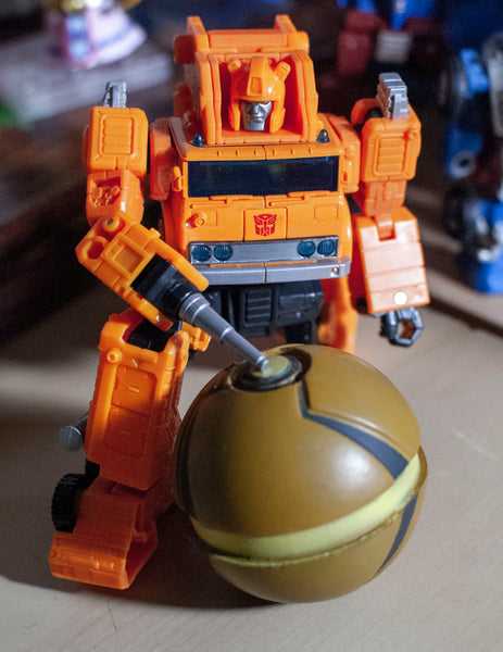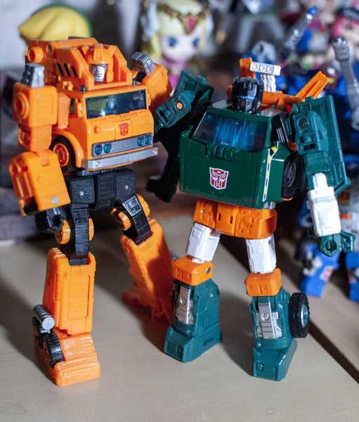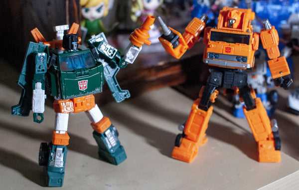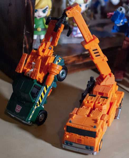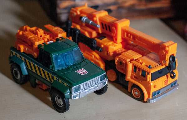 I’m a big fan of these characters as a pair, and these versions of them look good together. They really did Grapple right here, mostly. He’s characterful, fun, and evocative of a kind of non-violent construction robot design. It’s “mostly,” because I’d like to say he’s well-built, but there’s just the matter of those pegs, and the fact that they need to be sanded down. Like it or not, it’s a fatal, break-causing design flaw if not treated. Luckily it’s an easy fix, and if you were in the Transformers sphere when he came out, you definitely knew about it. But if you just bought him off the shelf without reading about it, or if you got him late, like me, and didn’t happen to remember, you might break yours. So it’s sort of a conditional highly recommended, if that makes sense, presuming that a) you care about this character the same way I do, and b) you’re willing and able to make the quick fix that it needs.