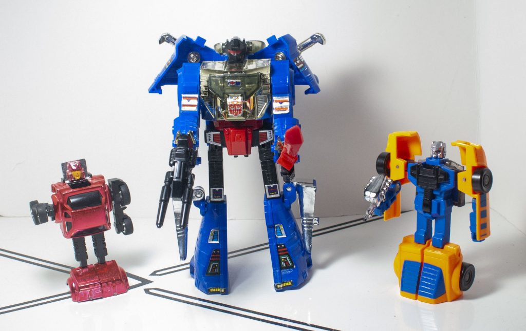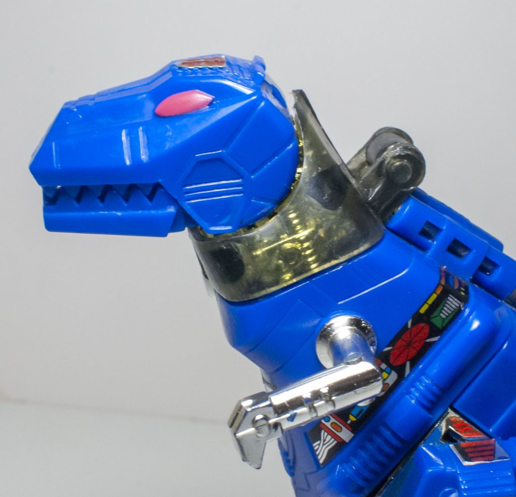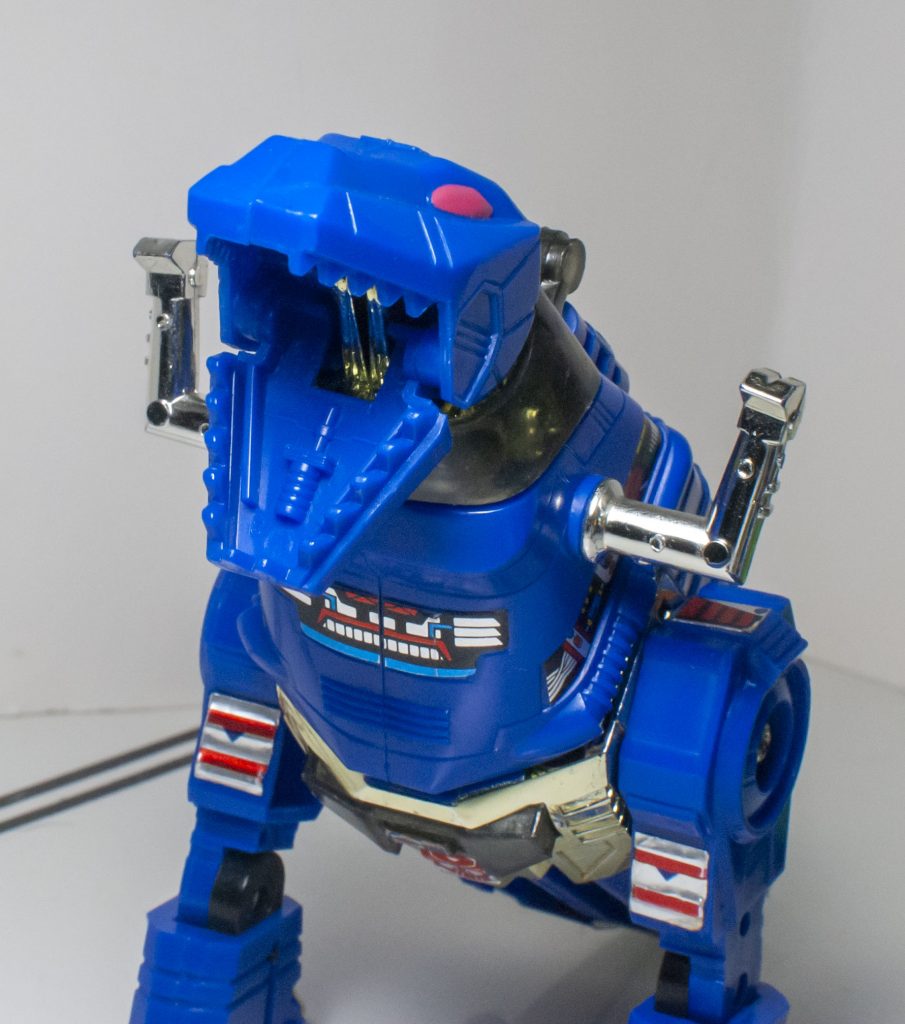 Additionally, his backpack of dino parts don’t really lock in, or have a set position, but just hang there, making them feel a bit messy. In particular, the torso “wings” can only go far enough to look like wings if you don’t fully lower the dino head, and he gets too back-heavy to stay standing if you have them that far back anyway (plus, one of them has another loose joint on my copy). And, again, he still has a more fragile handfeel than his blockier Microman and 1986-plus brethren, even with a small amount of diecast metal entering the equation (specifically, his, uh, pelvis. The red parts of it.)