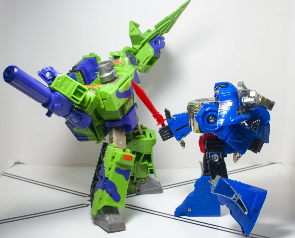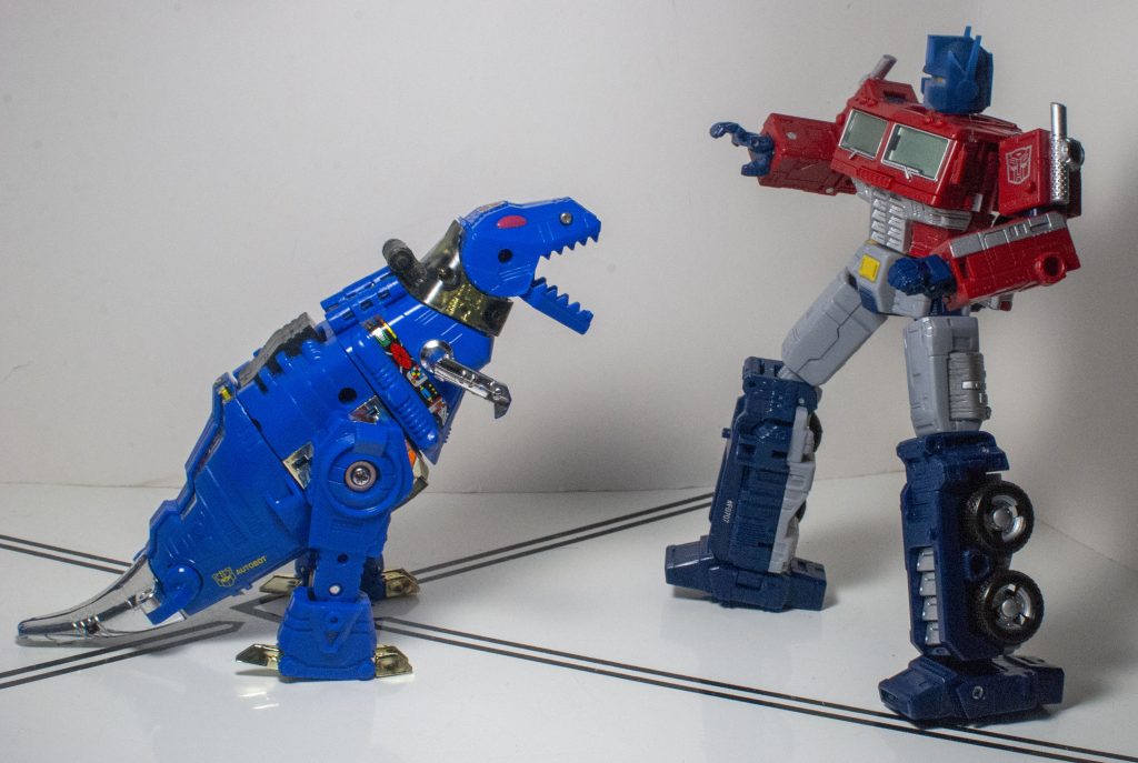 In this form, Grimlock’s again the size of a modern Legacy Deluxe, and I mean exactly the size, when compared to one that isn’t deliberately being really short, or really tall.