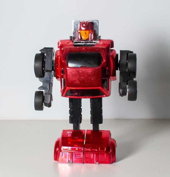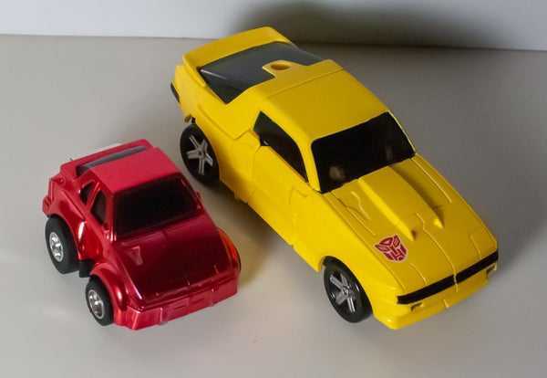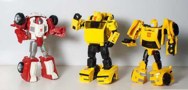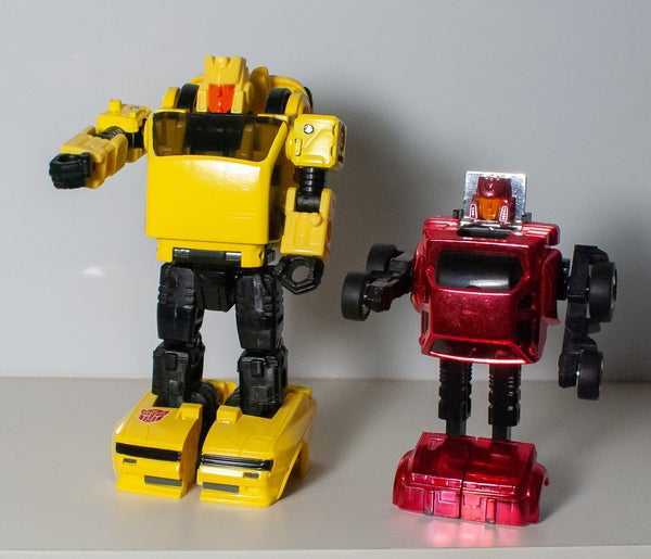 But let’s back up. Before he was a metallic red minibot in Generation 2, Hubcap was a nondescript yellow mini-bot in the third year of Generation 1, sharing his basic engineering with Bumblebee and Cliffjumper.