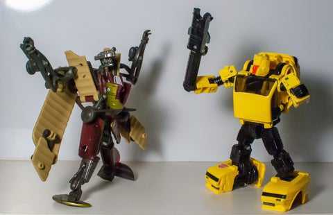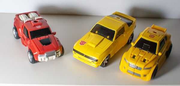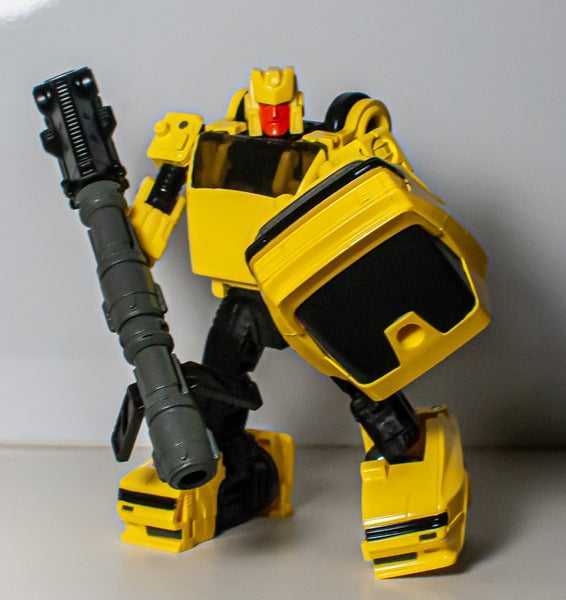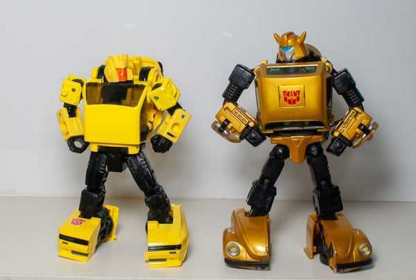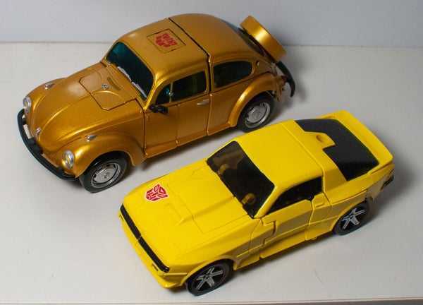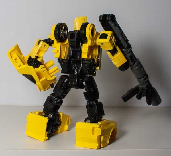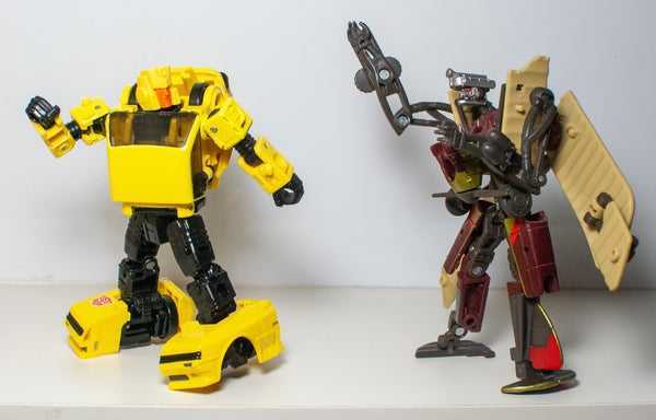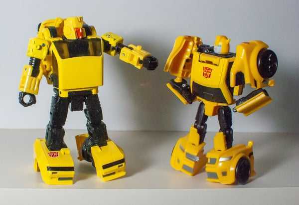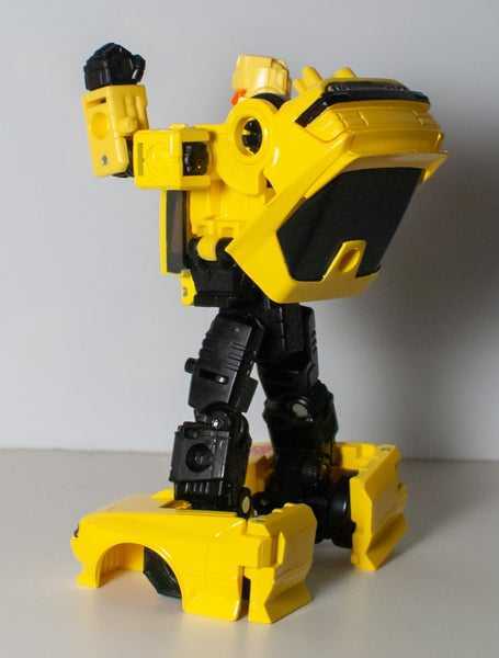 More importantly, though, Hubcap feels more substantial than any of the Legends or Scouts that I have in-hand. He’s denser and heavier, and has more joints, engineering, and articulation in him than either price point. In fact, he resembles a slightly scaled-down version of the first Masterpiece Bumblebee (I have the G2 version here for comparison).